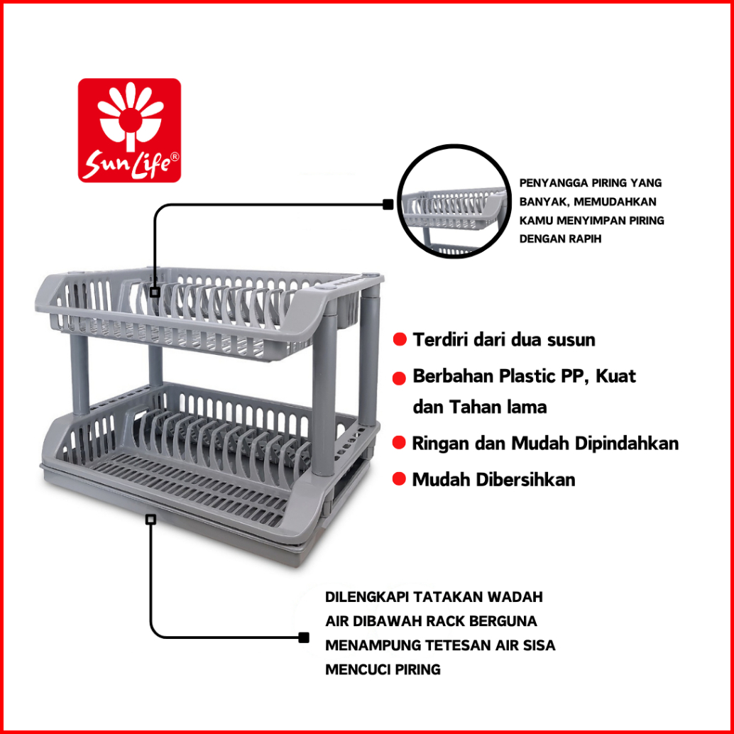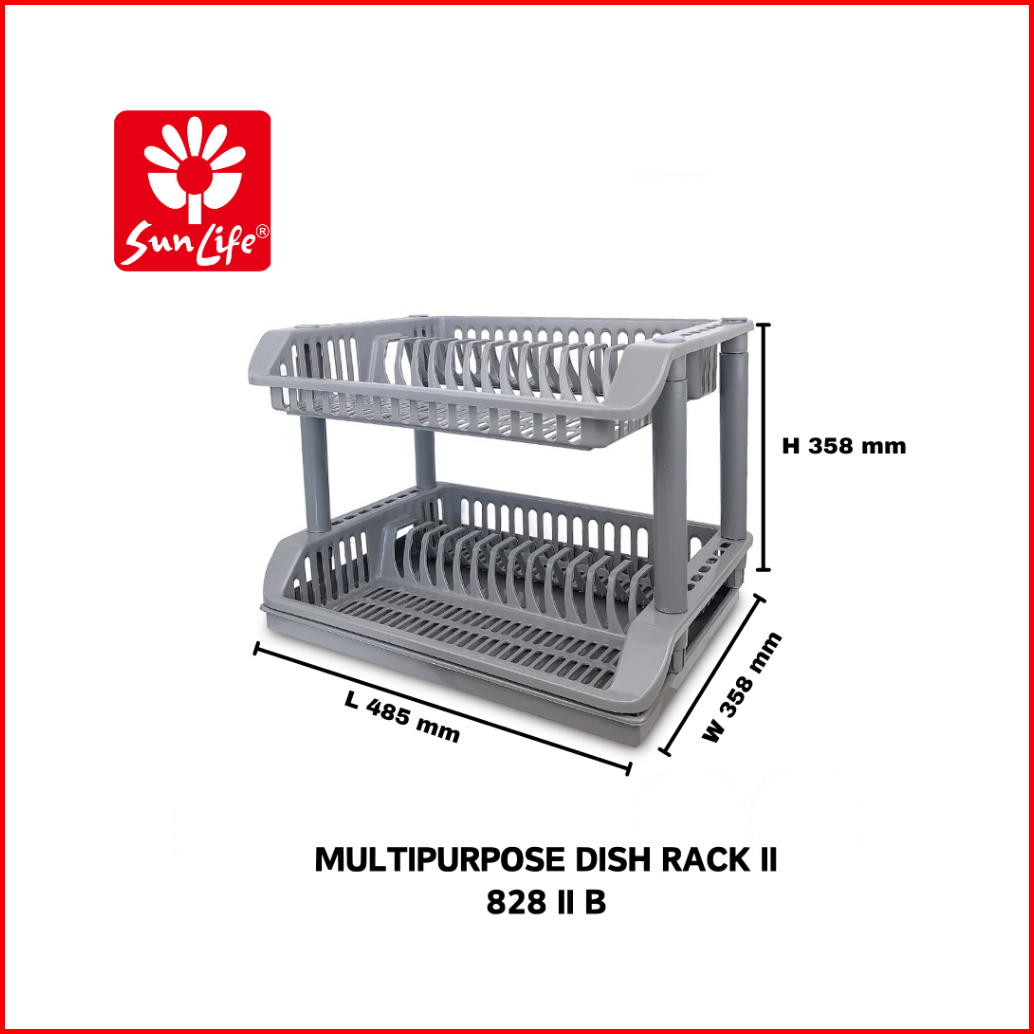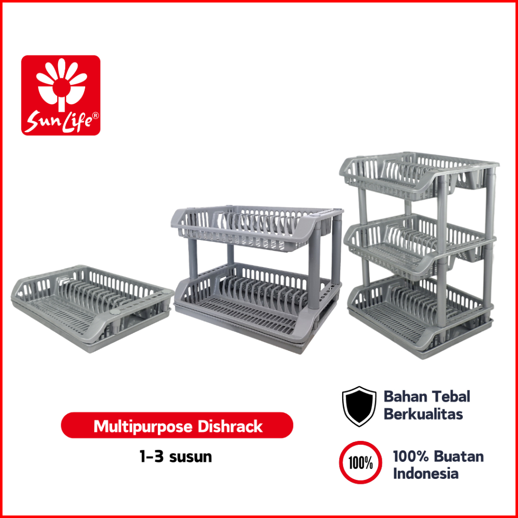Sunlife Multipurpose Dish Rack Rak Piring Plastik 1 - 3 Susun Dengan Nampan Rak Cuci Piring Serbaguna Snl-828-b-grey