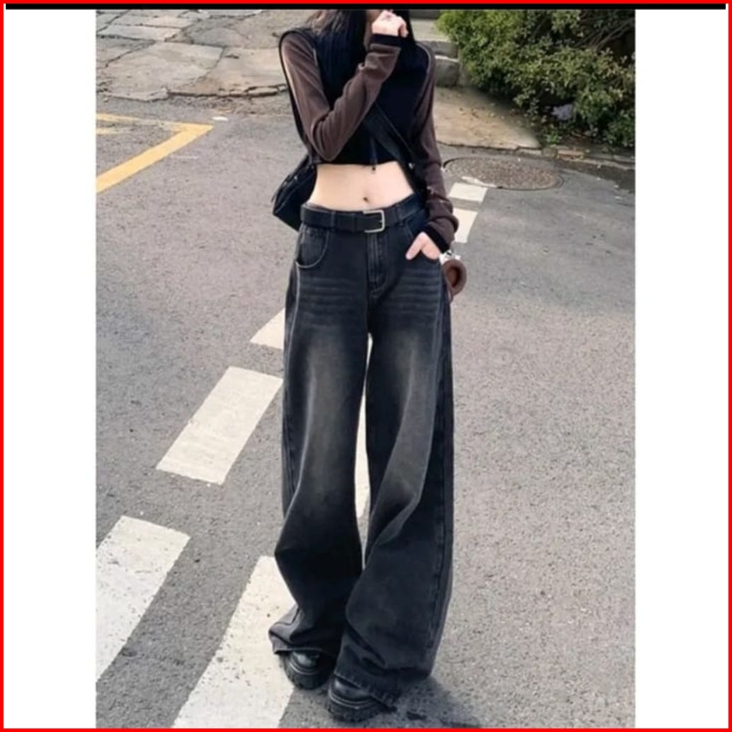 Celana Panjang Wanita Loose High Waist Jeans Premium - Korean Stayle Jeans Baggy Loose Oversize