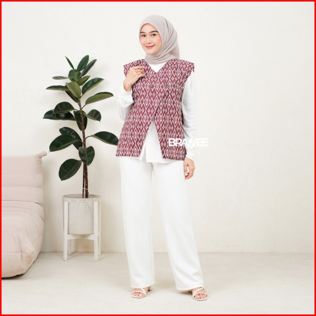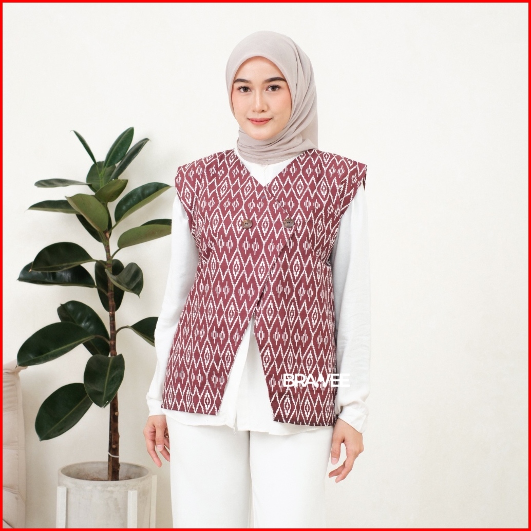 Brawee Vest Outer Rompi Batik V Neck Motif Belah Ketupat