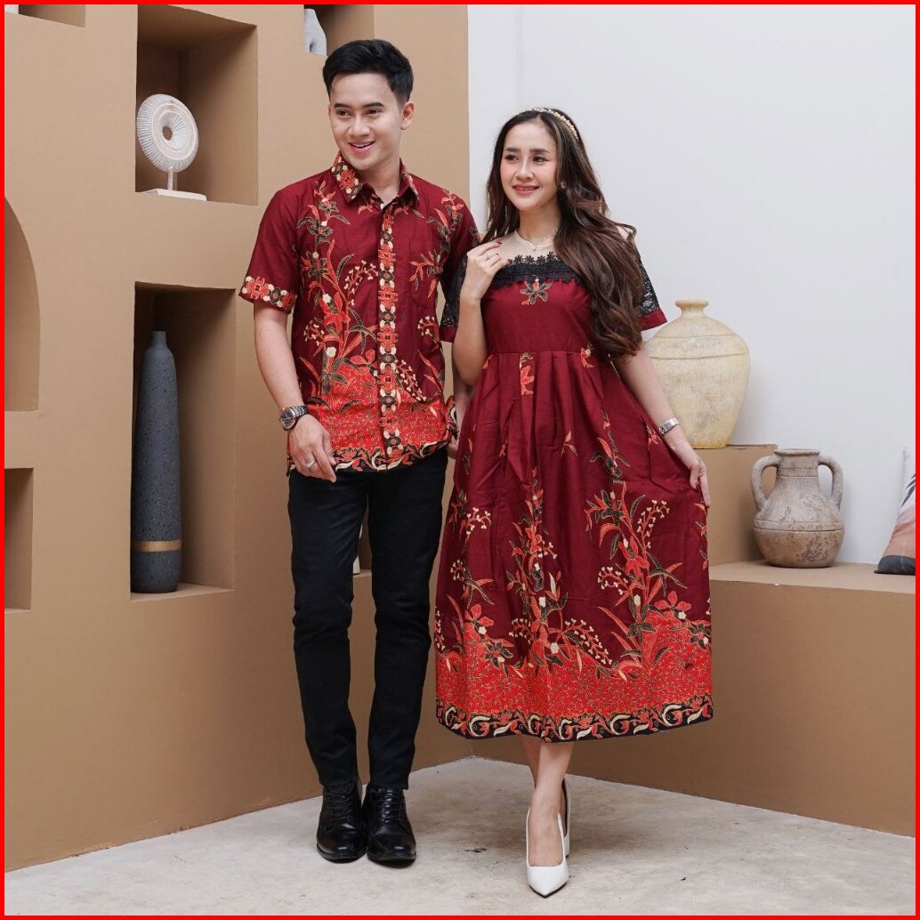 Dress Batik Modern Dress Pesta Trendy Couple Kemeja Batik Lengan Panjang