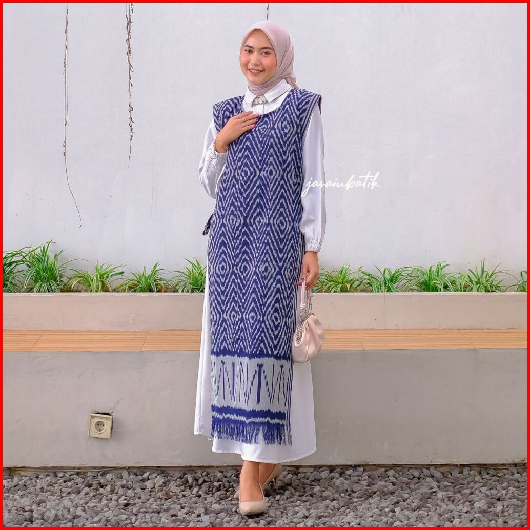 Vest Outer Vest Wanita Long Vest Tenun Rompi Batik Rompi Tenun