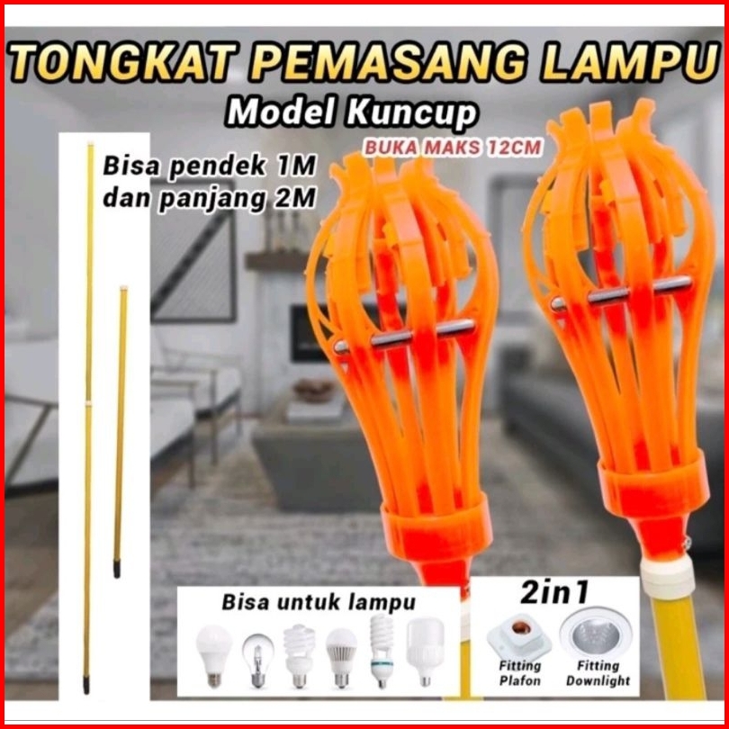 Tongkat Stick Pengganti Pemasang Bohlam Lampu Downlight 2ini1 Serbaguna 3meter Safety Alat Pasang Lampu