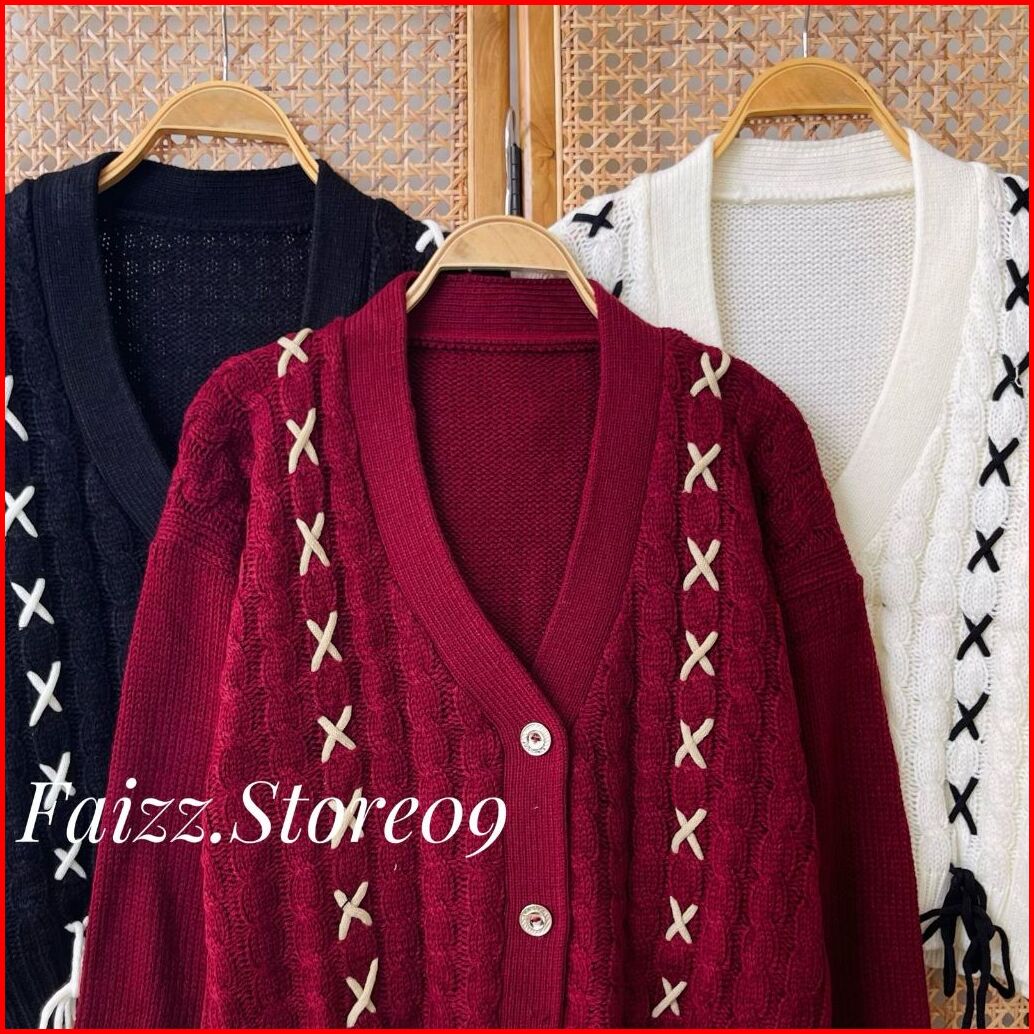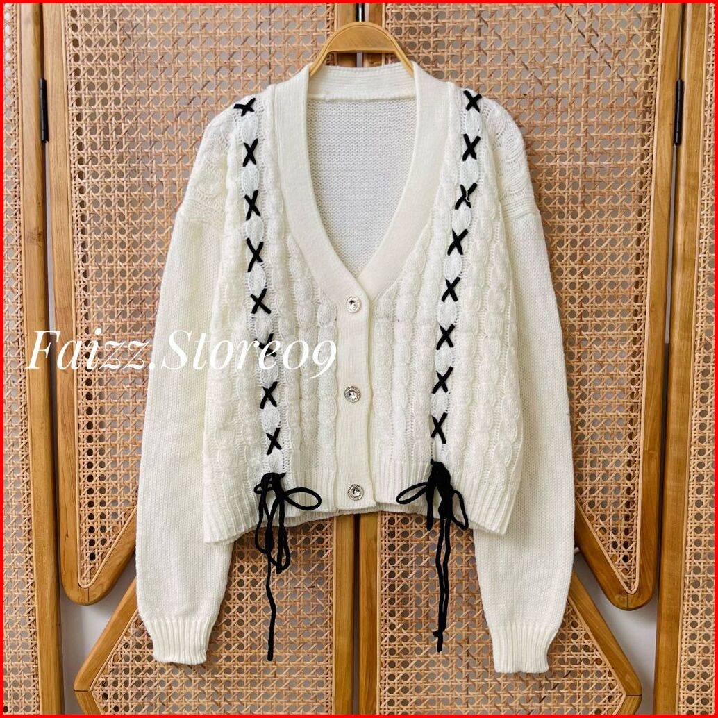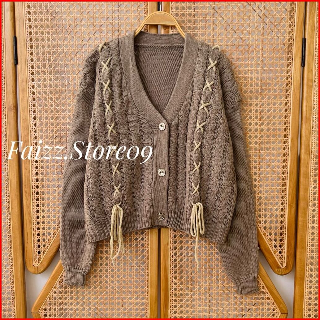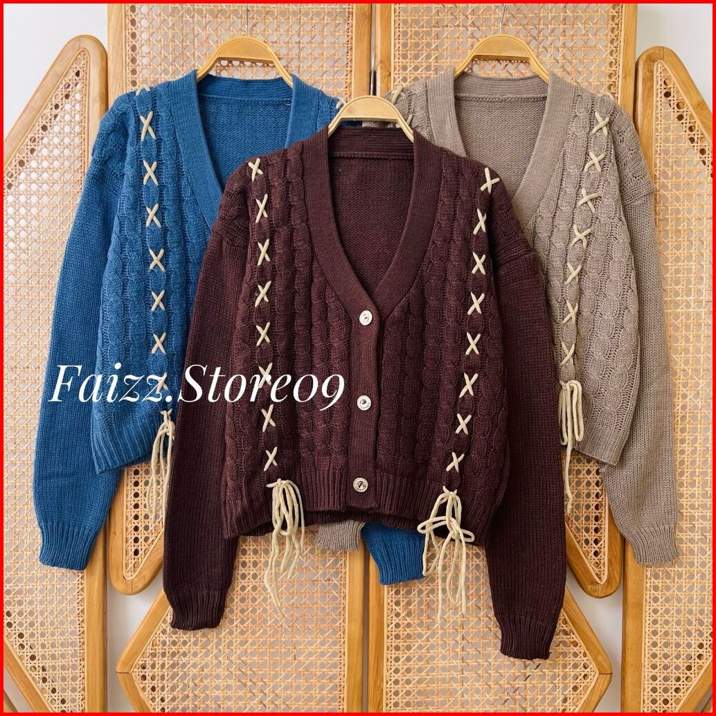 Armor Cardy Knitwear - Outer Atasan Cardigan Rajut Kancing Wanita Motif Cable Tali Kur Korean Style Premium