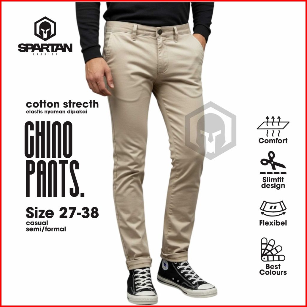 Celana Chinos Skinny Pria Slim Fit Bahan Stretch Nyaman Kekinian