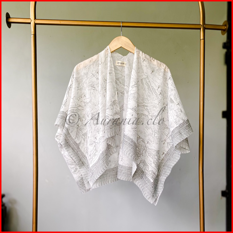 Outer Arwen Kimono Full Motif Lengan Batwing Voal Denim