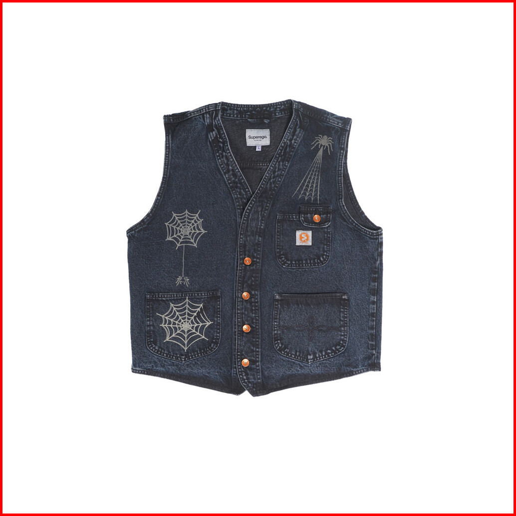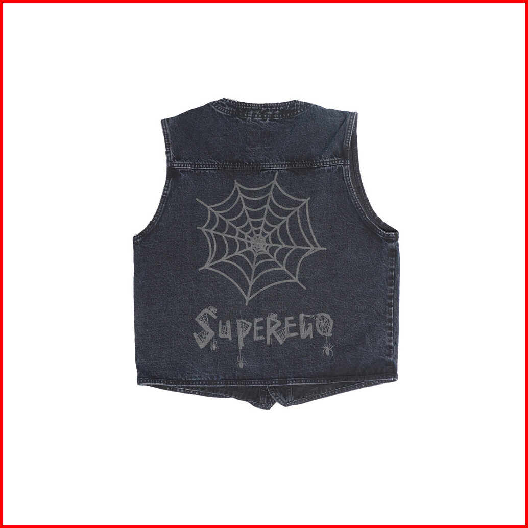 Superego Vest Tarantula Rompi Denim Pria New V-neck Snow Black Vdt01a
