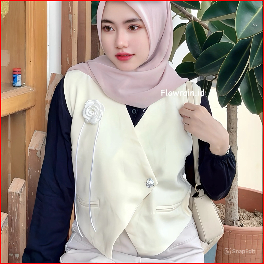 Flowrain Vest Outer Wanita- Blazer Tanpa Lengan Korean Casual Style