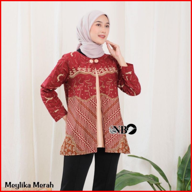 Atasan Batik Couple Modern Blus Bolero Kemeja Hem Lengan Pendek Motif Meylika Atasan Kerja Seragam Kerja Ready Stock