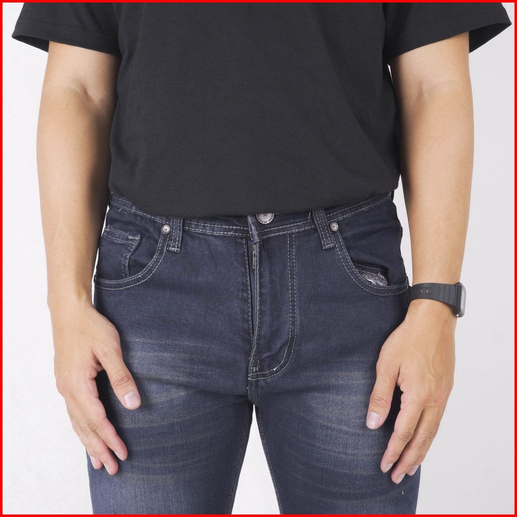 Mr.pumpkindenim - Celana Panjang Soft Jeans Stretch Melar Pria Slim Fit Navy Spray Mpd03d