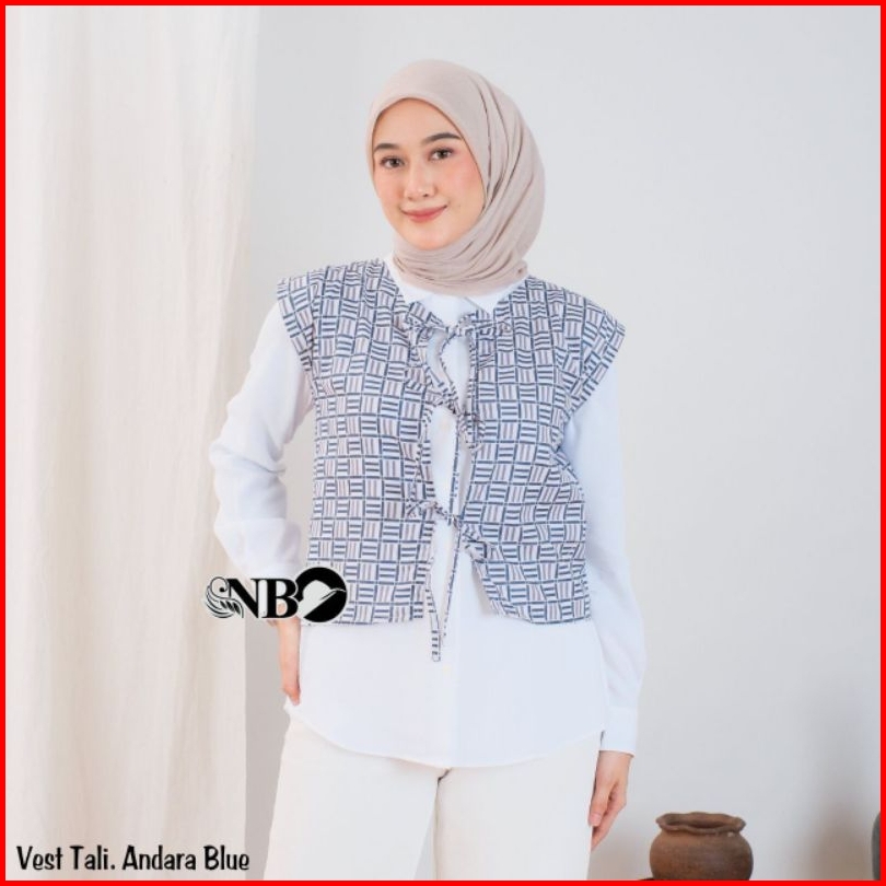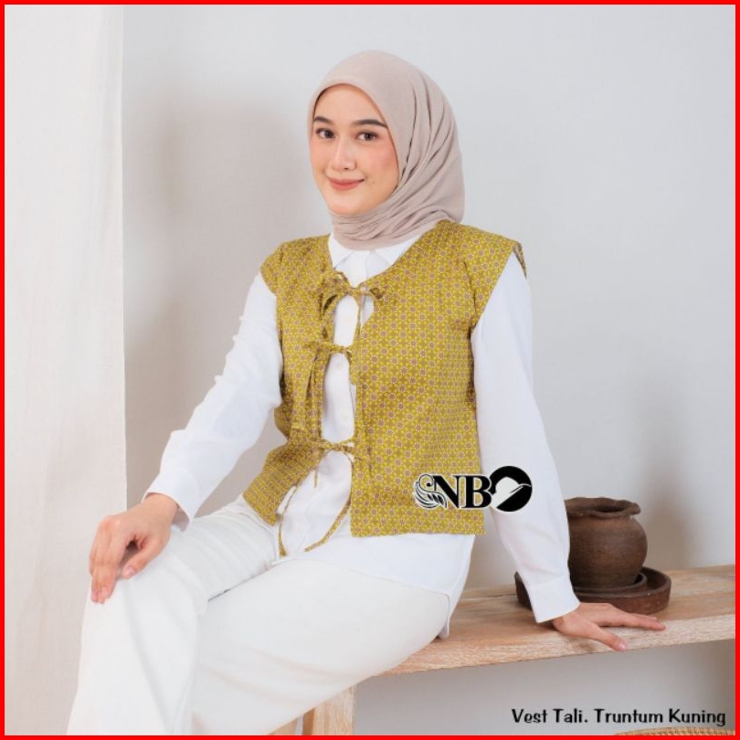 Vivilooks-vest Batik Pattern Premium Tali Depan Modern Etnik Katun Outer Rompi Batik Kekinian Etnik Termurah Atasan Wani