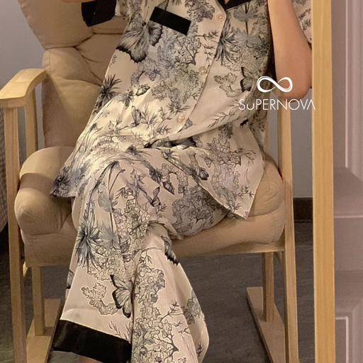 PAJAMAS Long Ice Silk Satin Elegan Piyama Mewah Baju Tidur Kancing Depan Lengan & Celana Panjang Halus Busui Friendly [SASSANOVA]