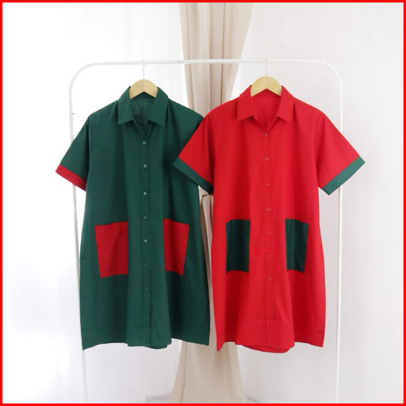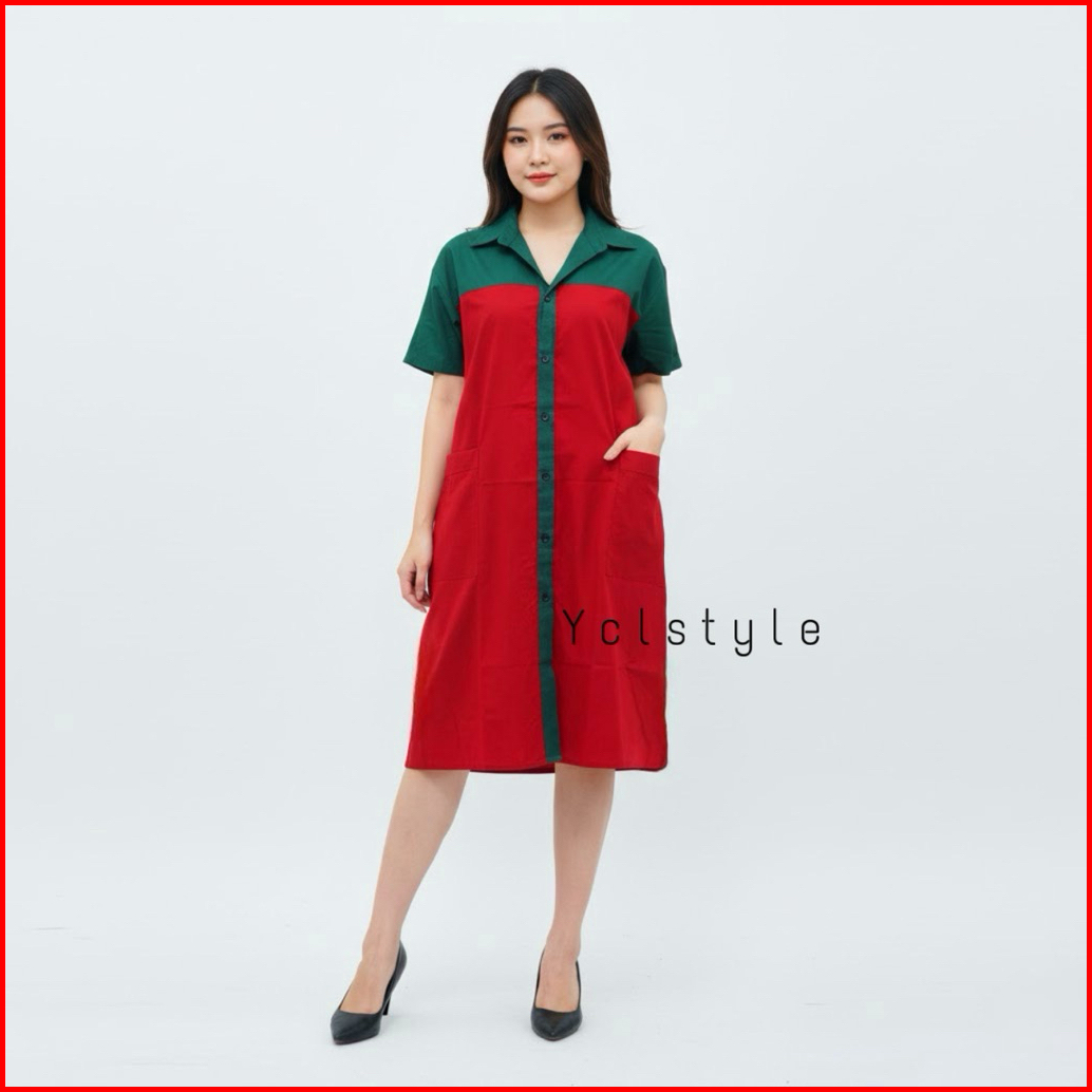 Ycl Ara Pocket Cotton Dress - Dress Natal Emerald Ruby Katun Premium
