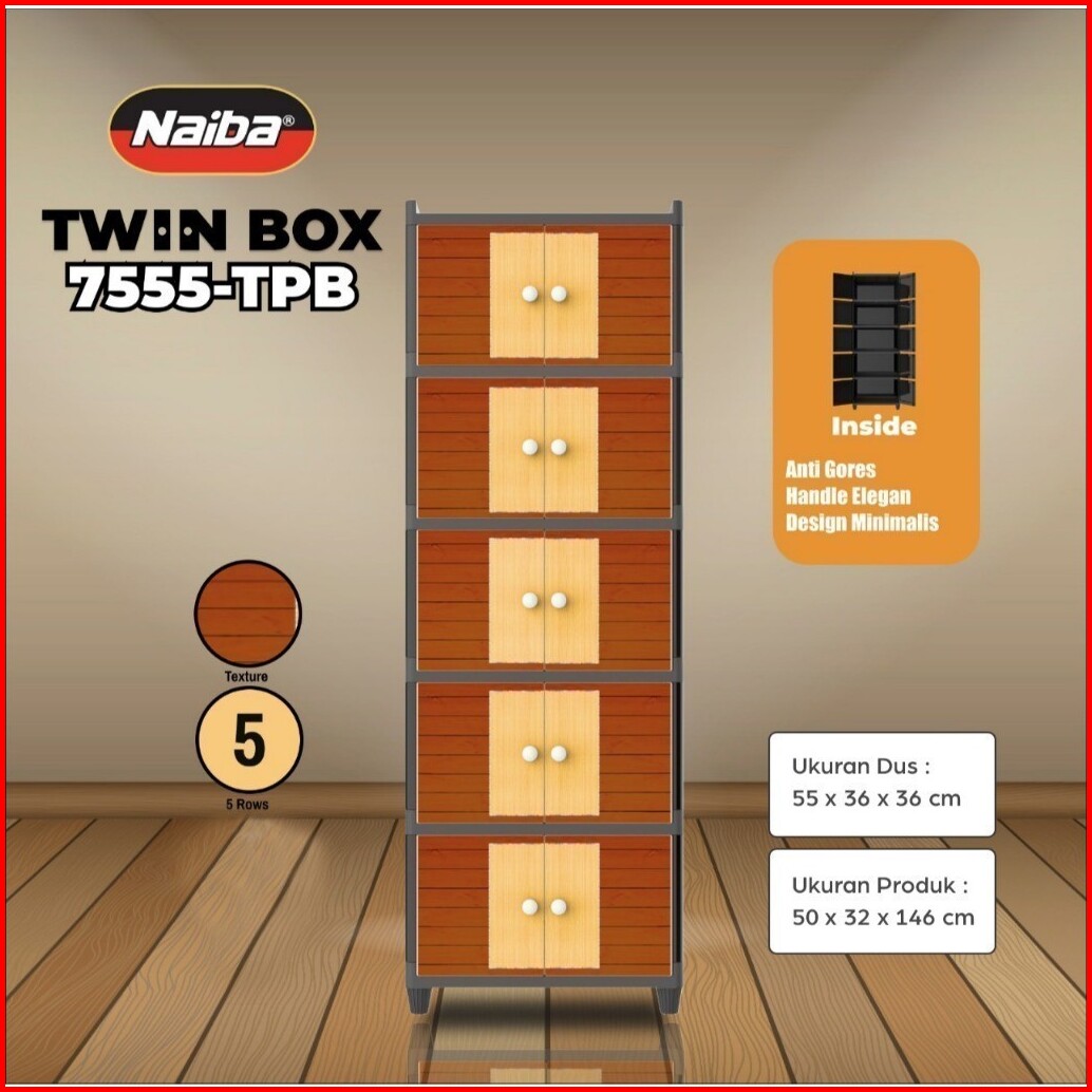 Naiba - Lemari Pakaian Plastik Twin Box Fit Nandos Lemari Susun