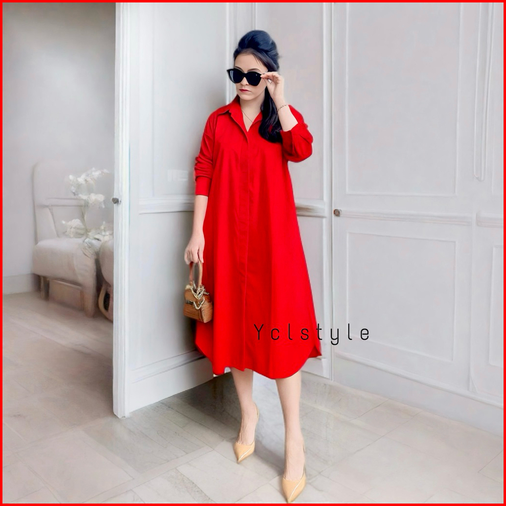Ycl Amara Dress - Zra Tunik Dress Wanita Katun Poplin Premium Midi Dress Tunik Kasual Zra Katun Premium