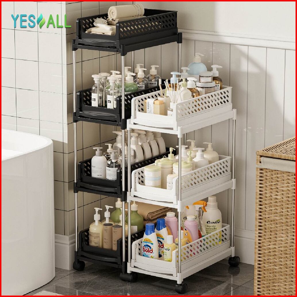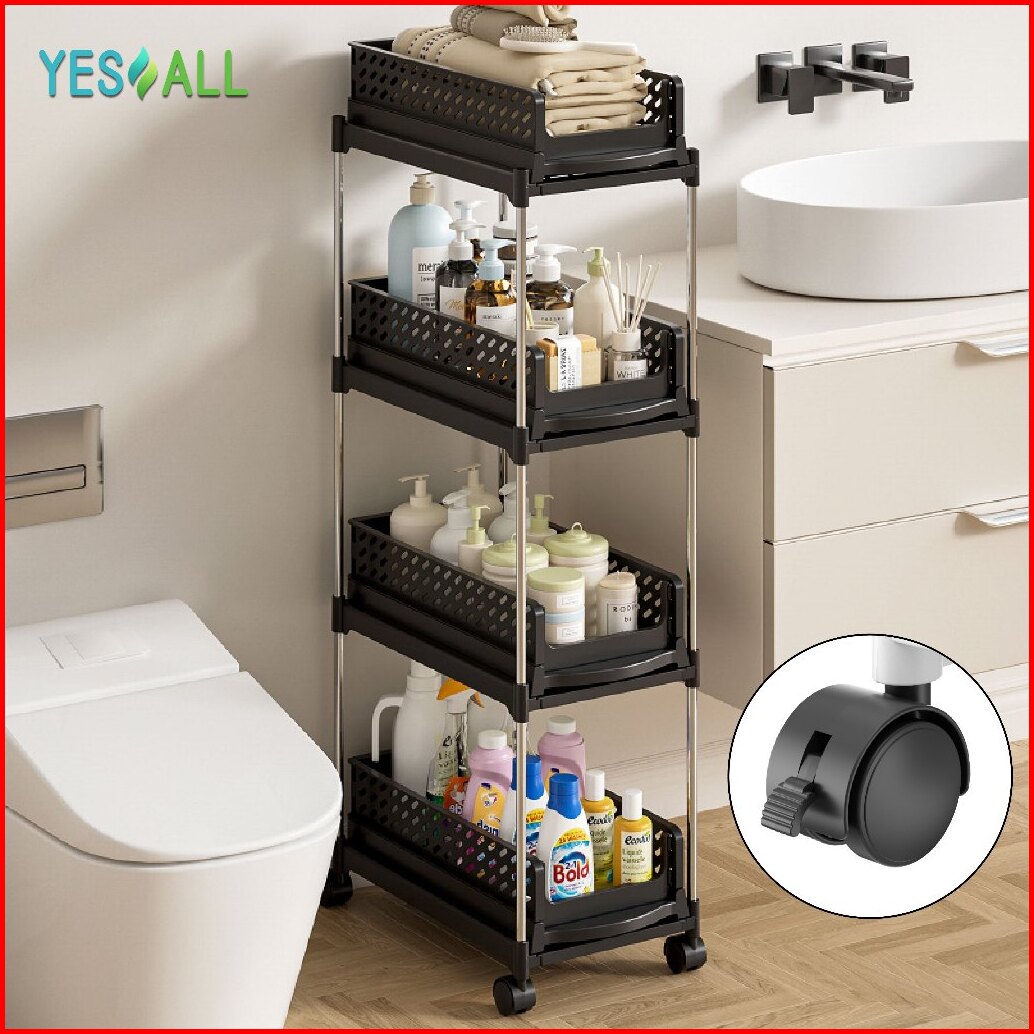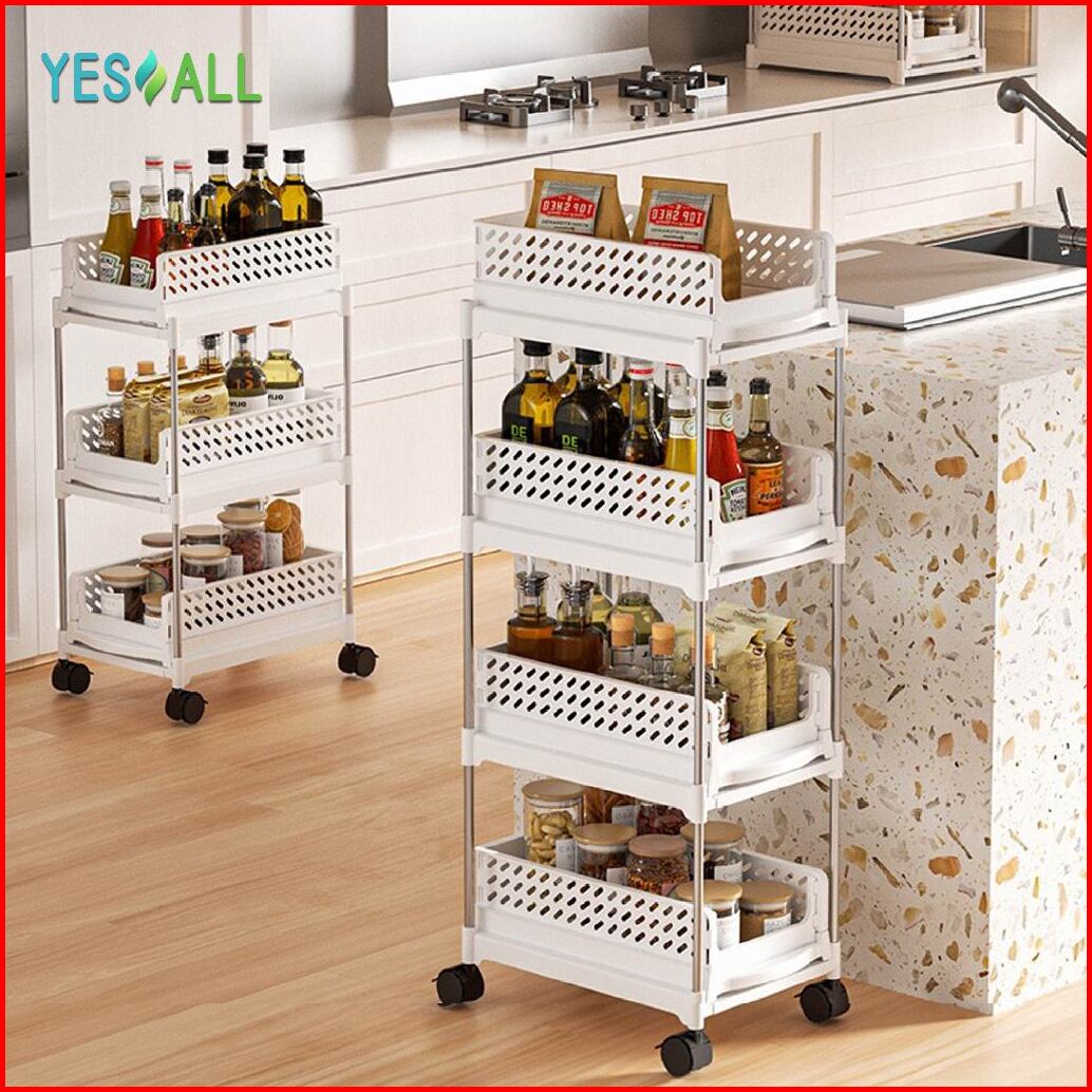 Rak Susun Serbaguna 2 3 4 Susun 4 Tingkat Rak Dapur Rak Kamar Mandi Dorong Troli Plastik Pp Stainless Dengan Roda 360 Un