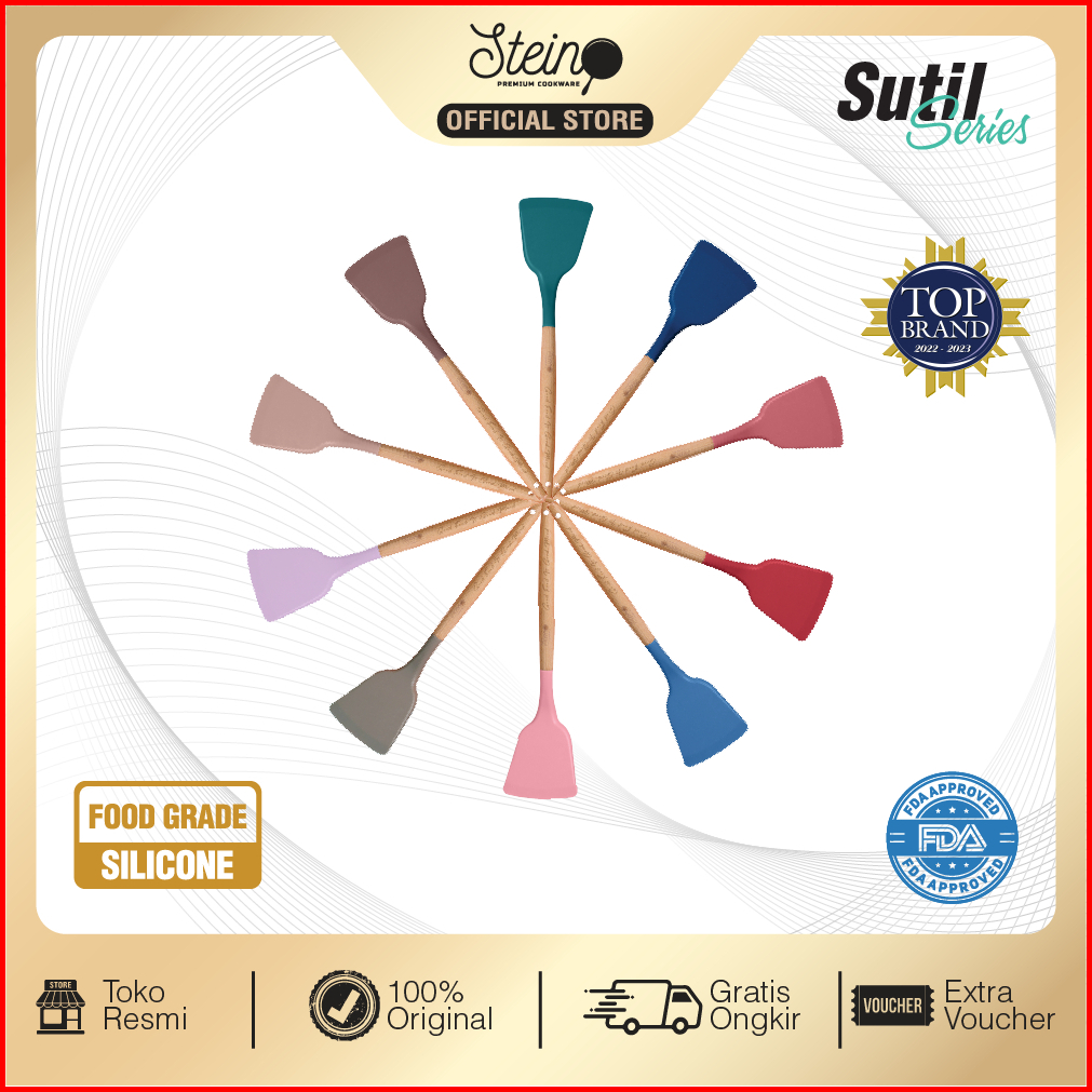 Stein Spatula Silikon Gagang Kayu Anti Lengket Tahan Panas Food Grade Sutil Choco