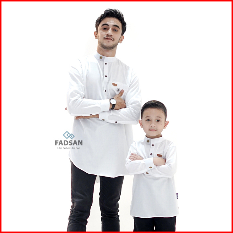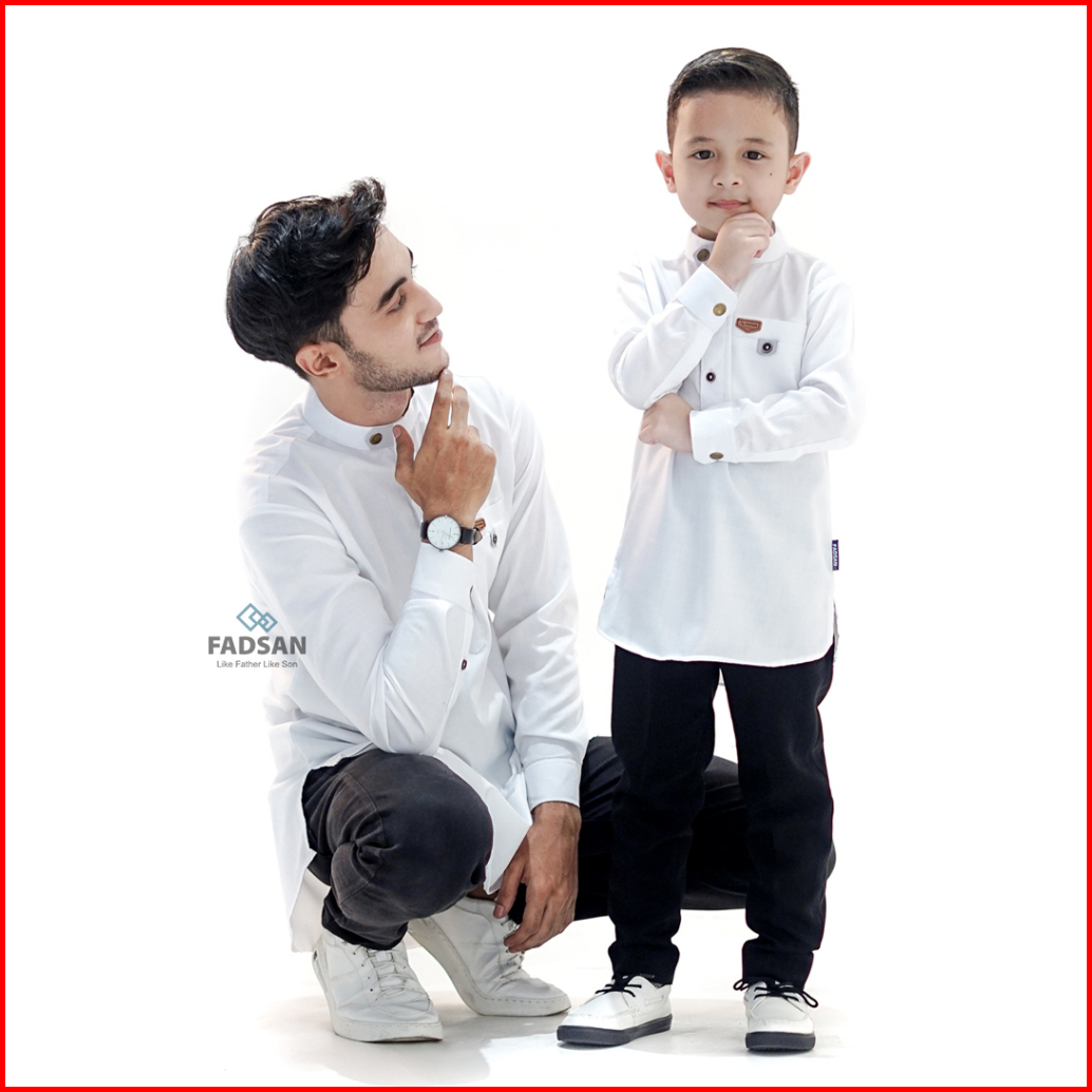 Baju Koko Kurta Pakistan Couple Ayah Dan Anak Leon Warna Putih - Fadsan