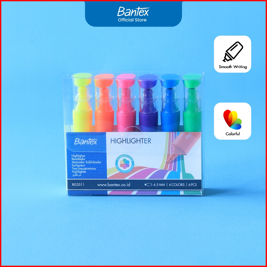 Bantex Highlighter Penanda Teks Satu Set Isi 6 Warna Fluorescent Cerah Bg3511