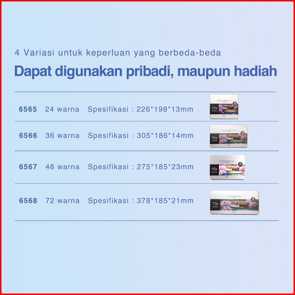 Deli High-grade Oil Pencil Color Pensil Warna Minyak 48 72 Warna 6567 6568