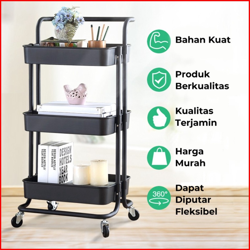 Naiba - Nandos Rak Troli Rak Kamar Mandi Rak Kamar Tidur Rak Penyimpanan Trolley Salon 3 Tingkat Hrk502
