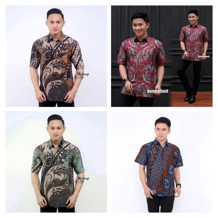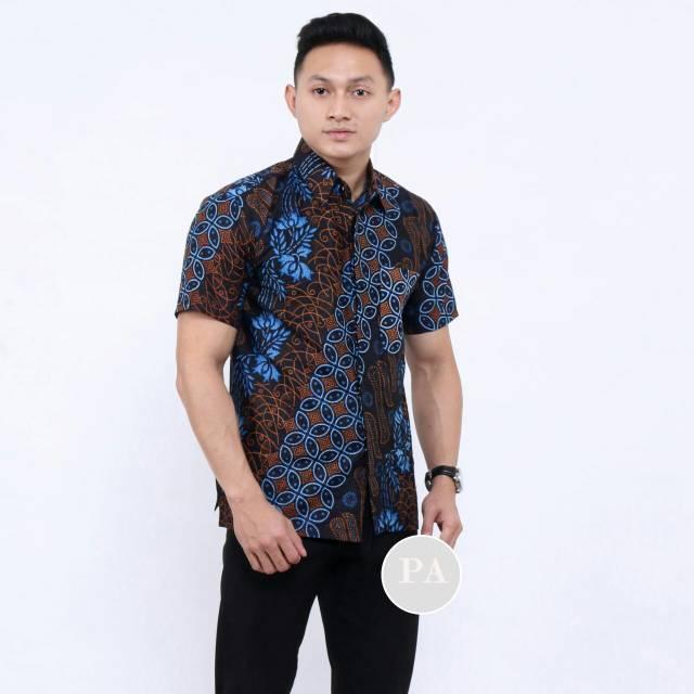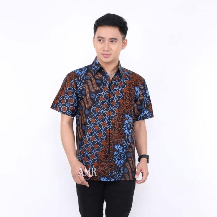 HEM BATIK PRIA LENGAN PENDEK SERAGAM HAJATAN SERAGAM KANTOR - KAWUNG BIRU, M