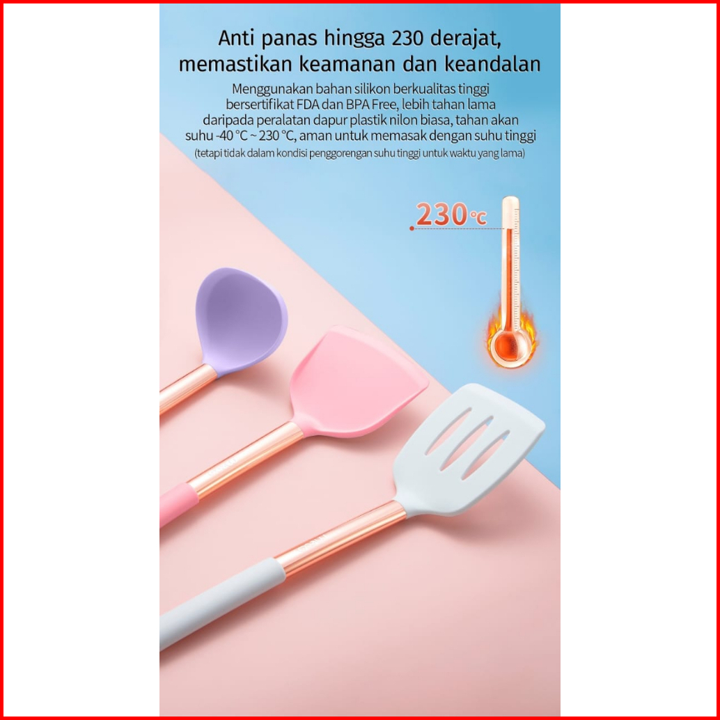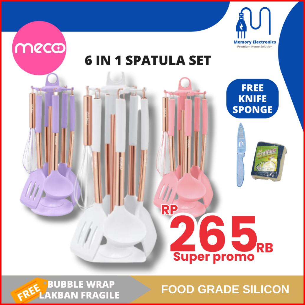 Mecoo Spatula Set Aesthetic Premium Silicone Sutil Set Higenis Anti Bakteri Jamur Tahan Panas Bpa Free Food Grade Kado N