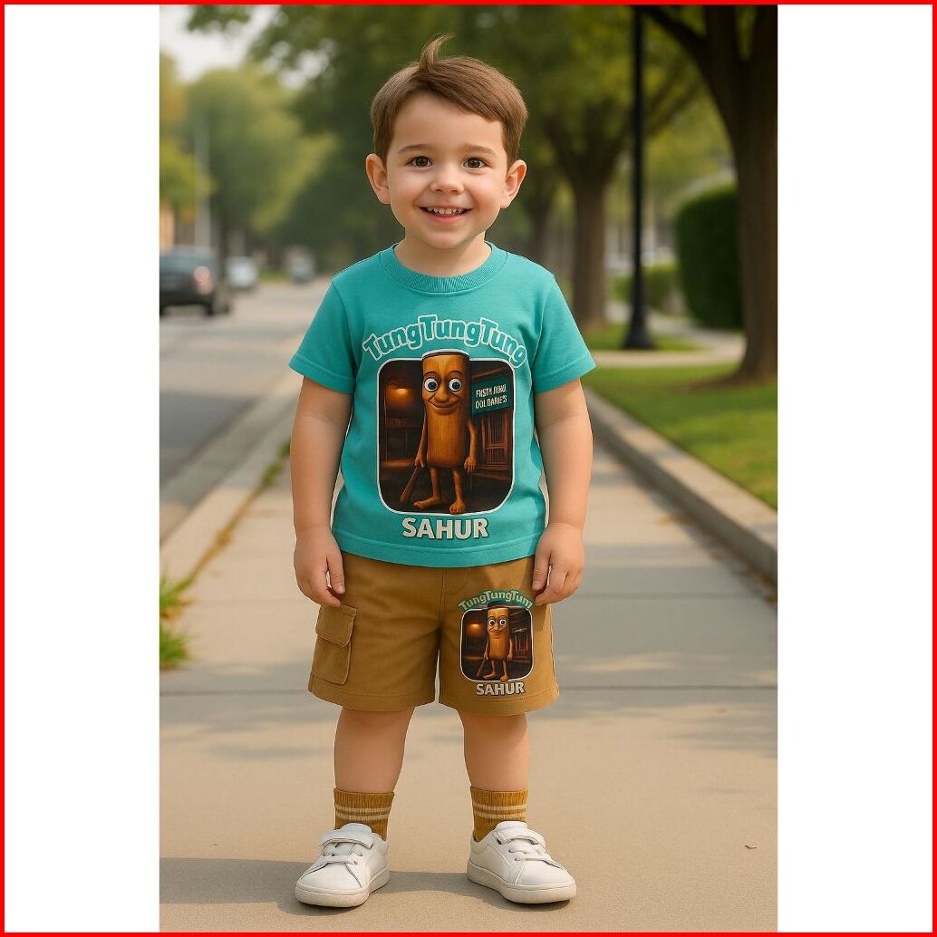 Setelan Baju Anak Laki Laki Terbaru Baju Tung Tung Tung Sahur Anak Umur 1-10 Tahun Baju Viral Kekinian