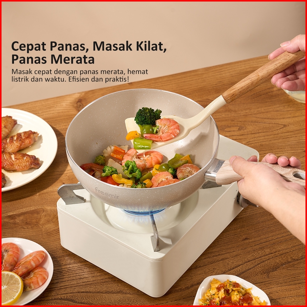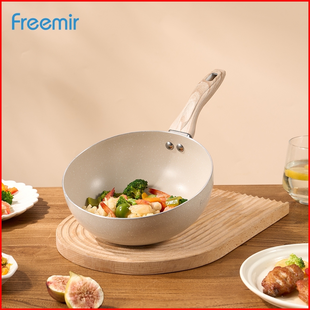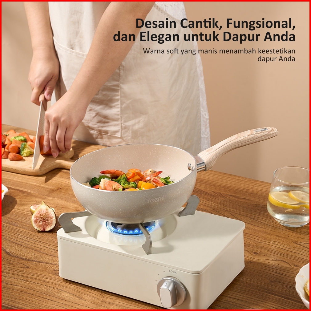 Freemir Wajan Panci Anti Lengket 20cm Wok Pan Cekung Masak Sayur Tumis - Beige