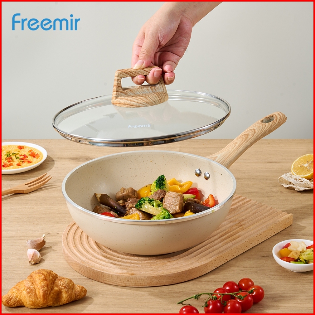 Special Freemir Wokpan Beige 24cm Granite Anti Lengket Bisa Semua Masakan Dengan Tutup Kaca Premium