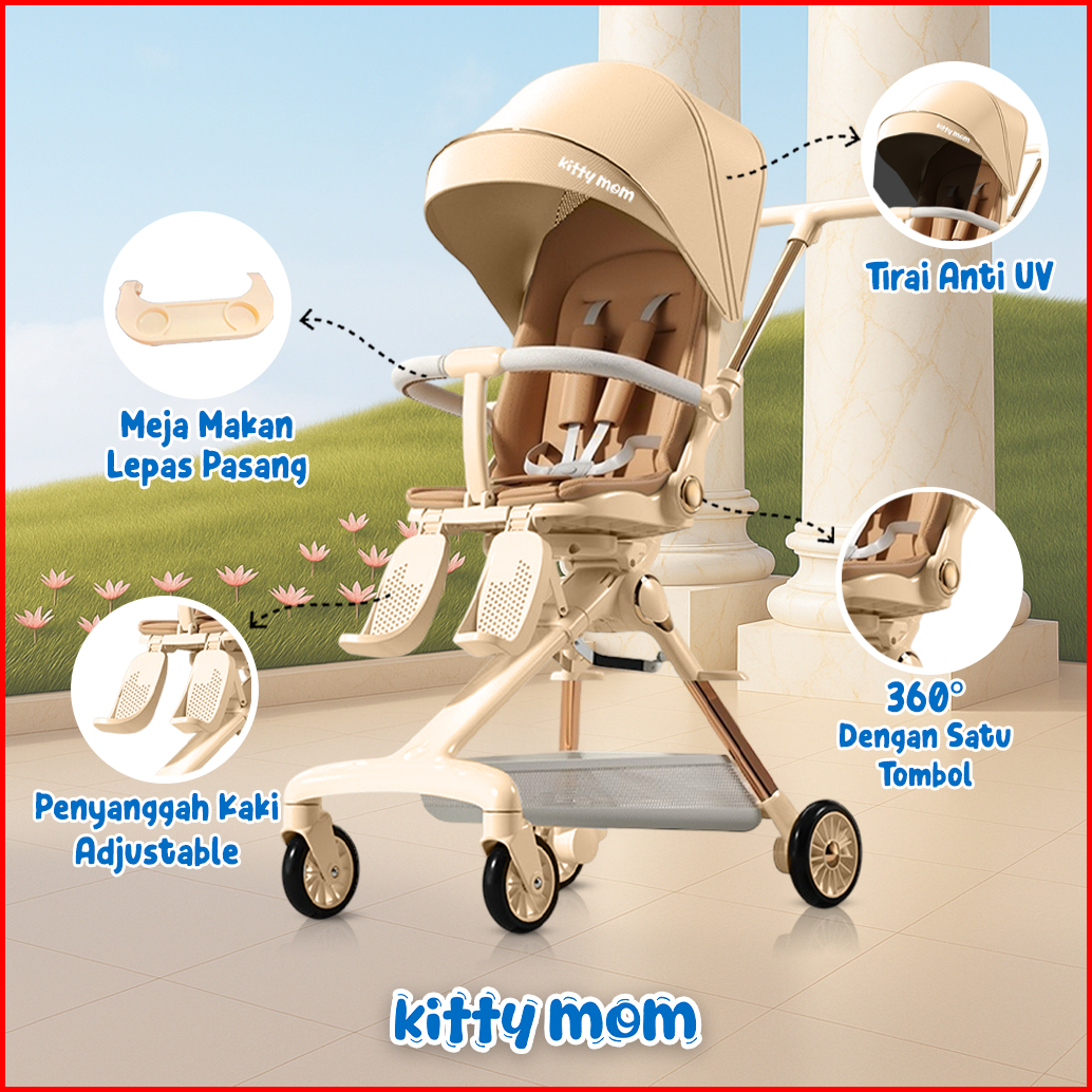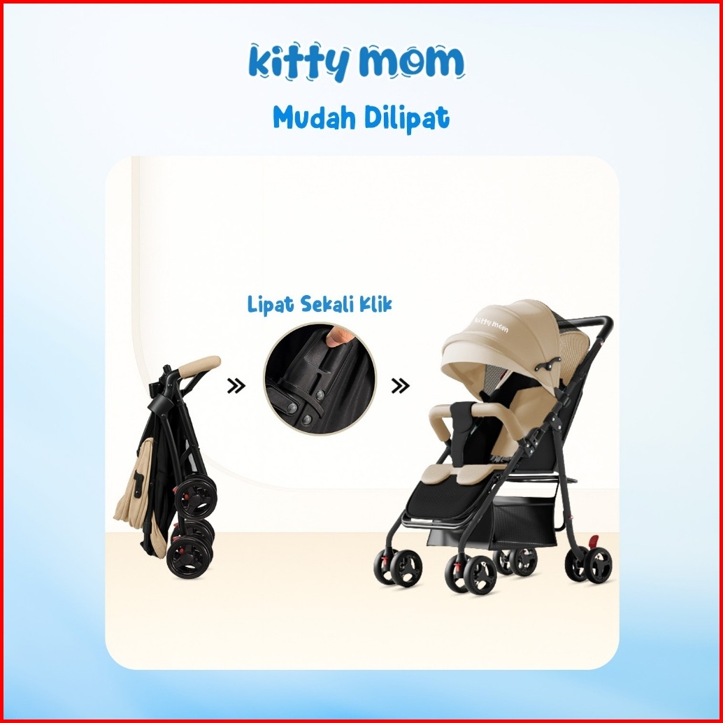 Kitty Mom Stroller Bayi Lipat Travelling Newborn Cabin Size Dorong Travel Friendly Mudah Dilipat Multi Posisi 0-5 Tahun