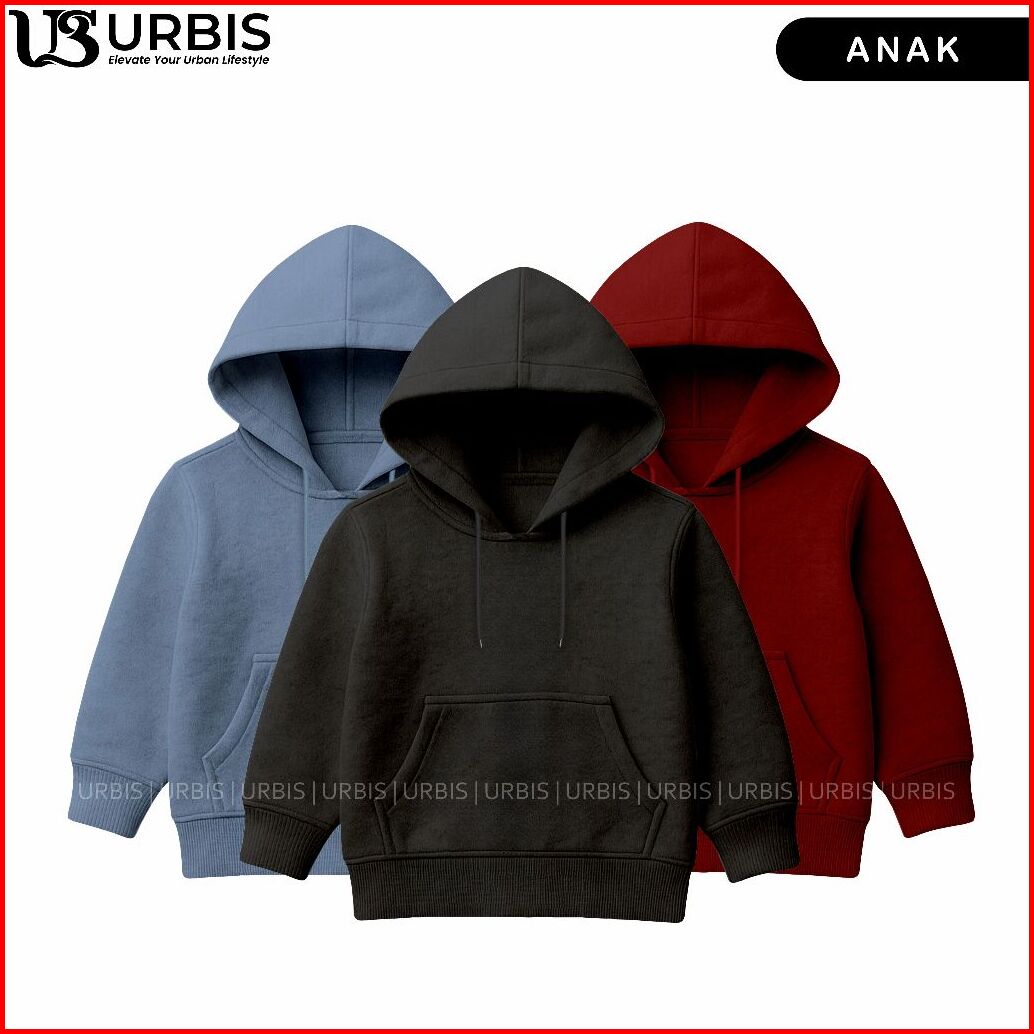 Urbis Jaket Hoodie Polos Anak Laki-laki Perempuan Usia 3-13 Tahun Fleece Tebal Premium