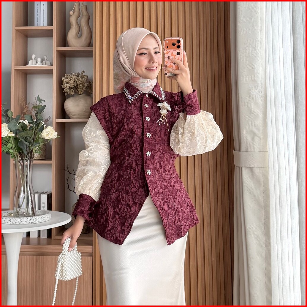 Saskia Blouse Flower Embroidery Payet Jacquard Organza