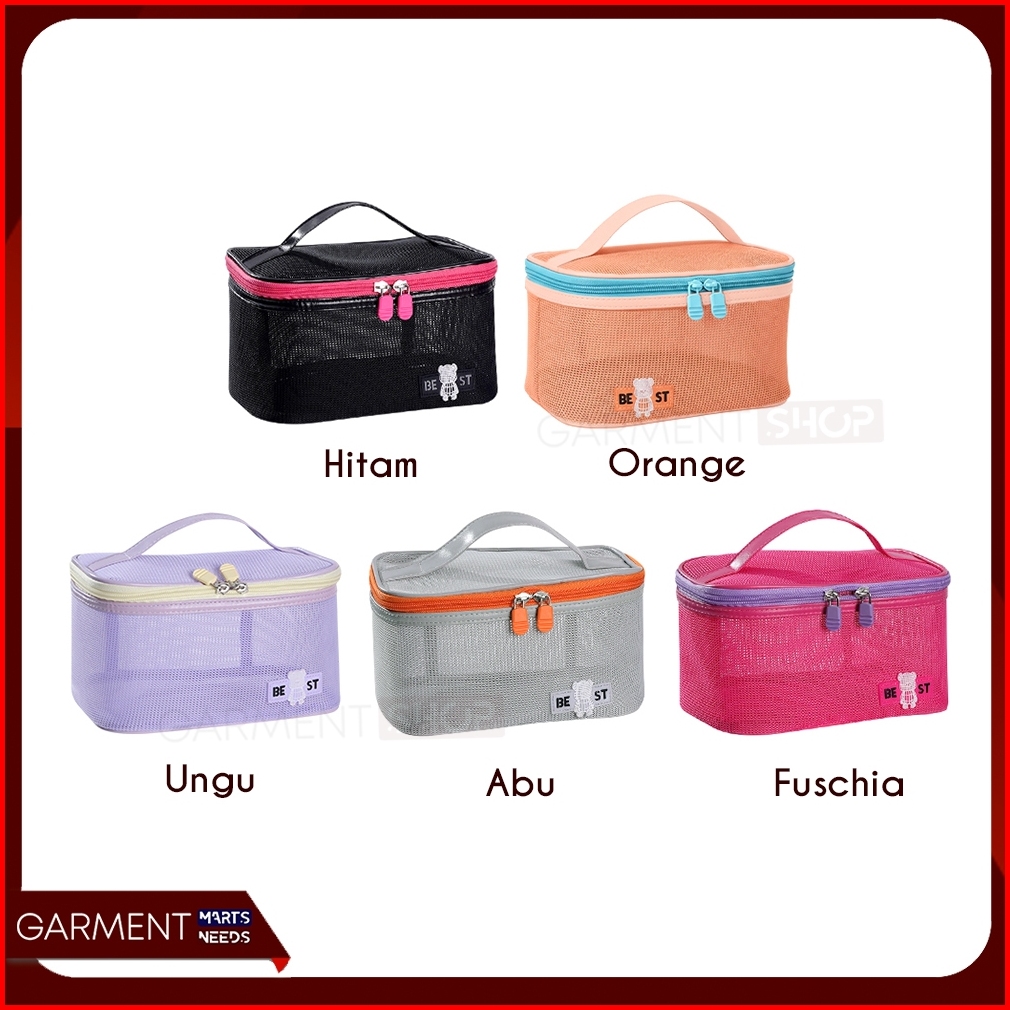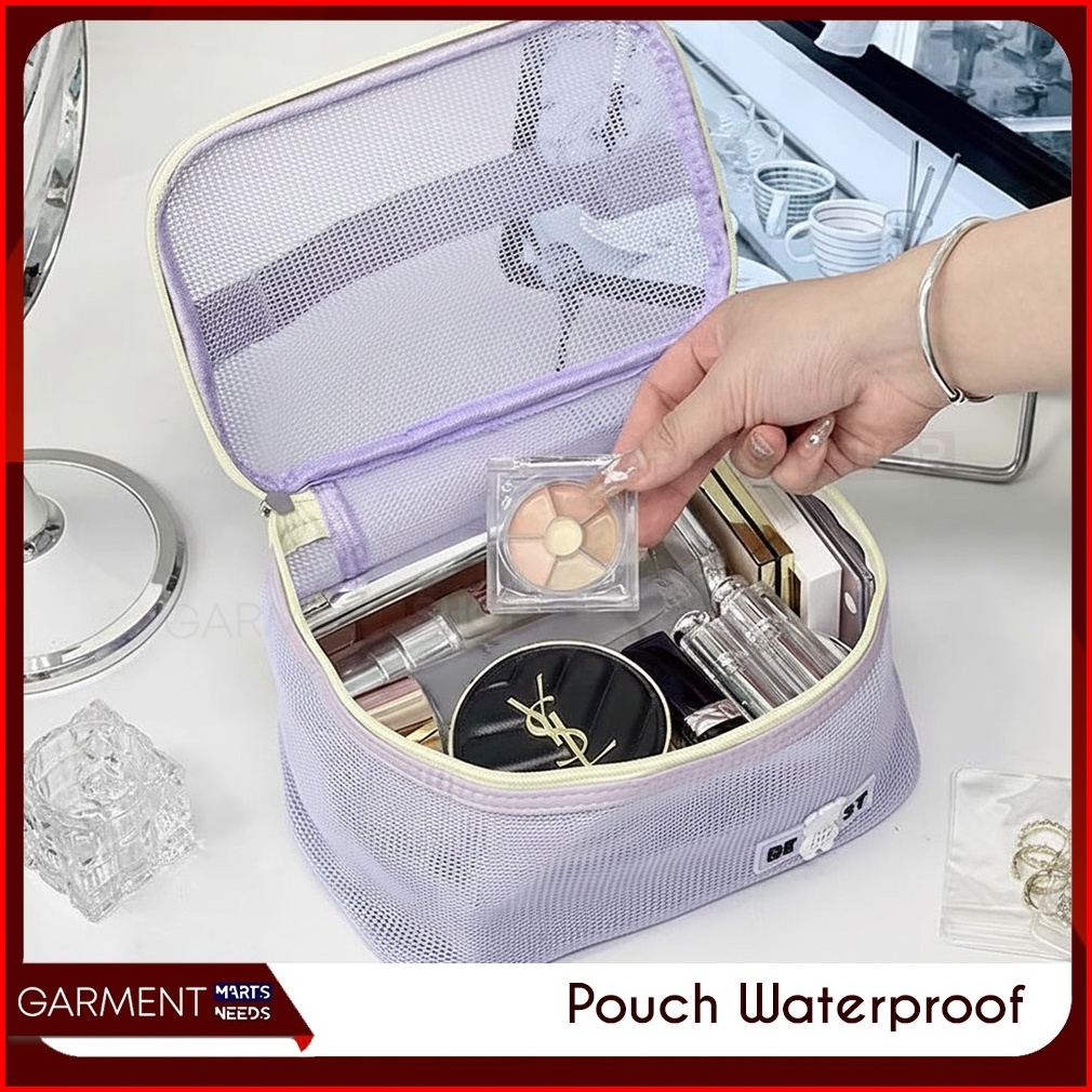 Tas Kosmetik Jaring Mesh Transparant Travel Organizer Make Up Toiletry Bag Portable Kapasitas Besar Serbaguna