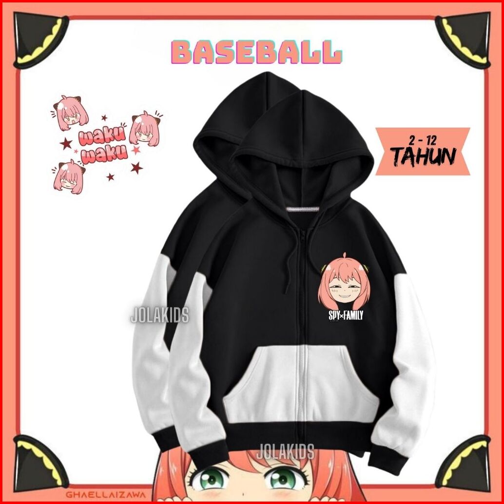 Hoodie Zipper Anak Anya Forger 2-12 Tahun Jaket Sweater Resleting Anak Laki Laki Perempuan Cowok Cewek