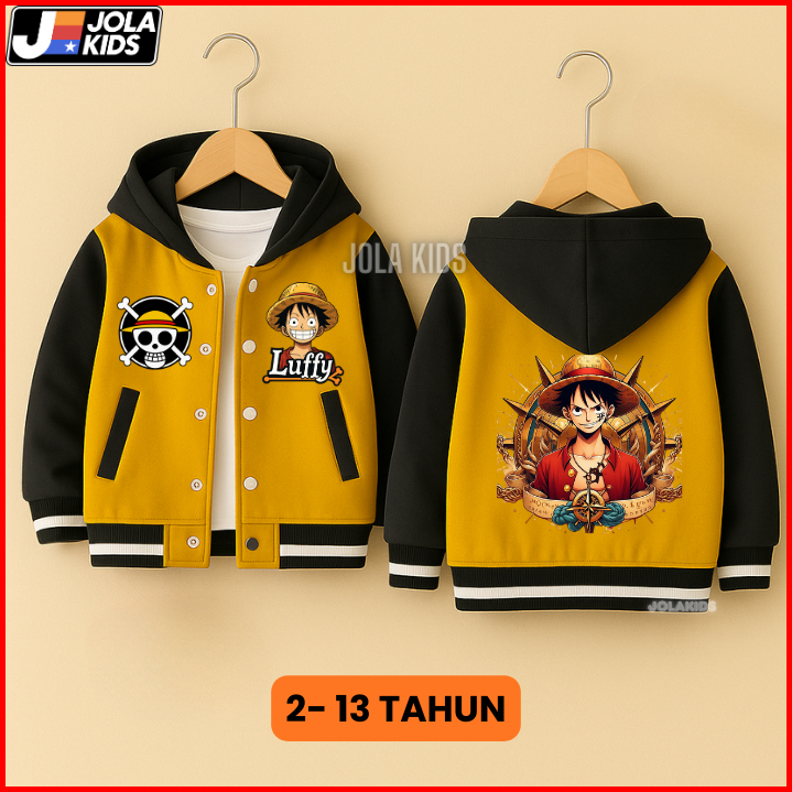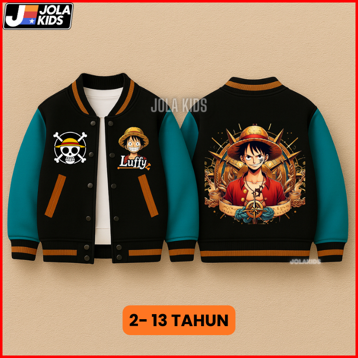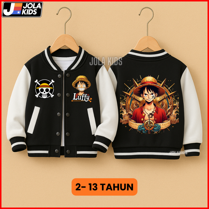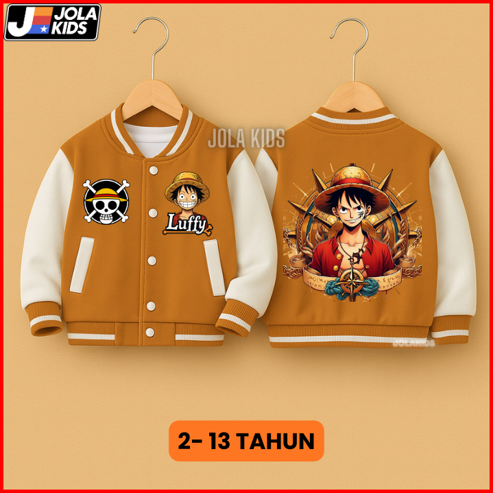 Jaket Varsity Baseball Anak One Piece Luffy Laki Laki Perempuan Umur 2-12 Tahun Jolakids