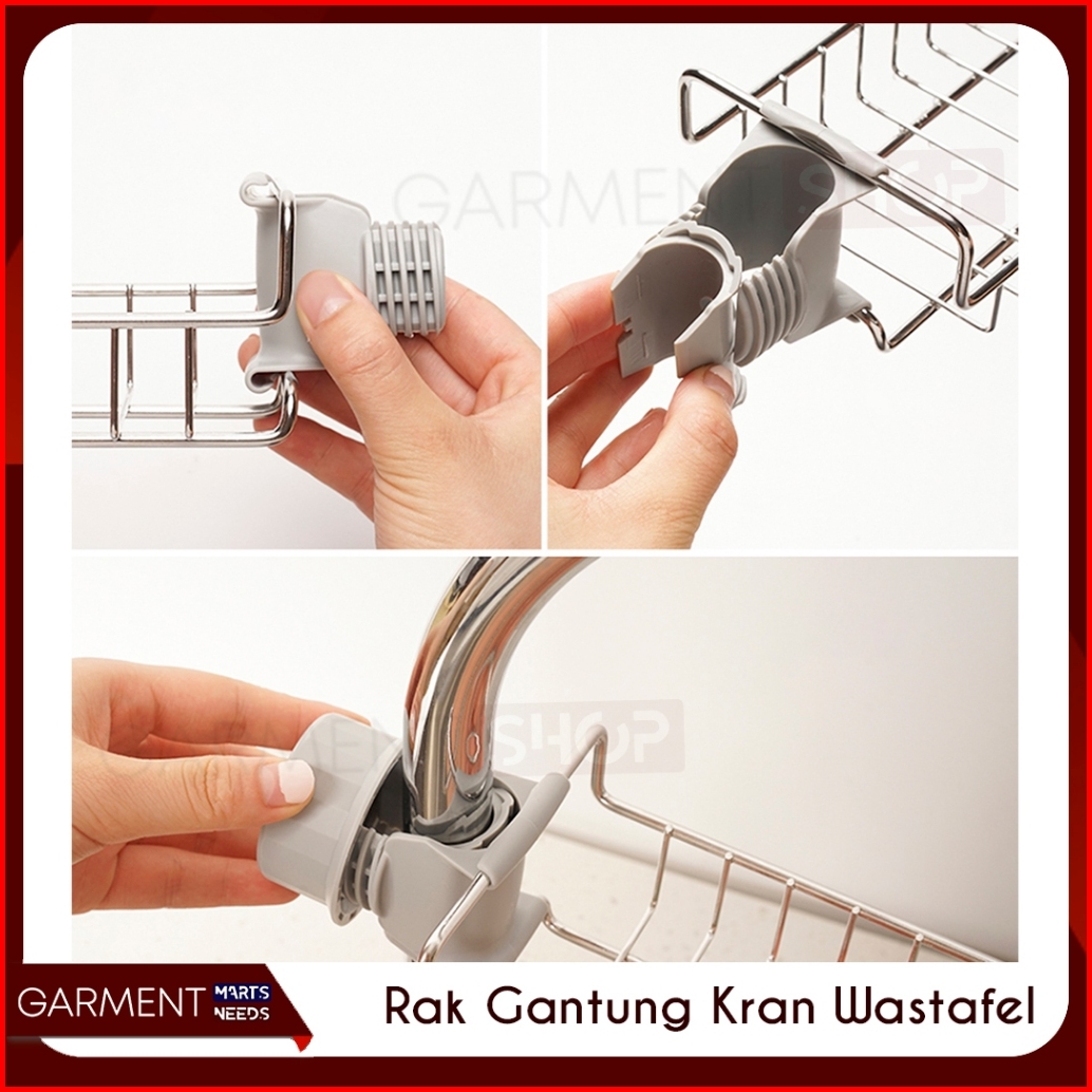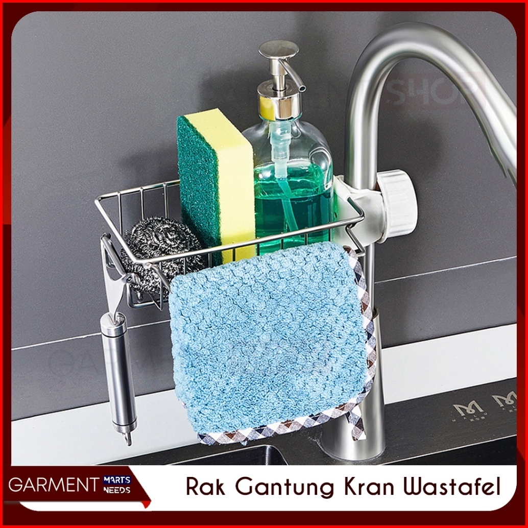 Rak Wastafel Gantungan Kran Tempat Spons Cuci Piring Bak Sabun Sink Air Keran Stainless Anti Karat