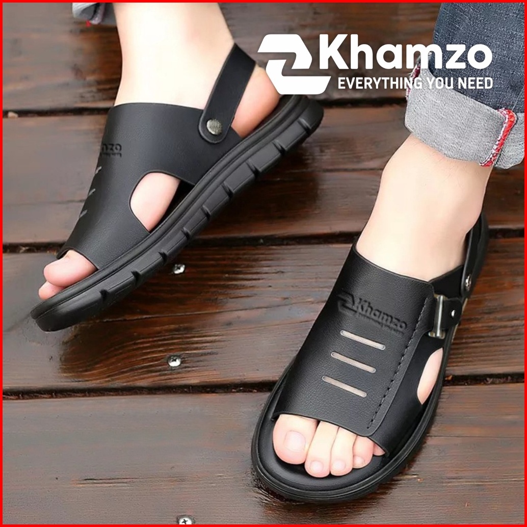 Khamzo Sandal Slop Pria Asli Kulit Kasual Import Original K08 Premium