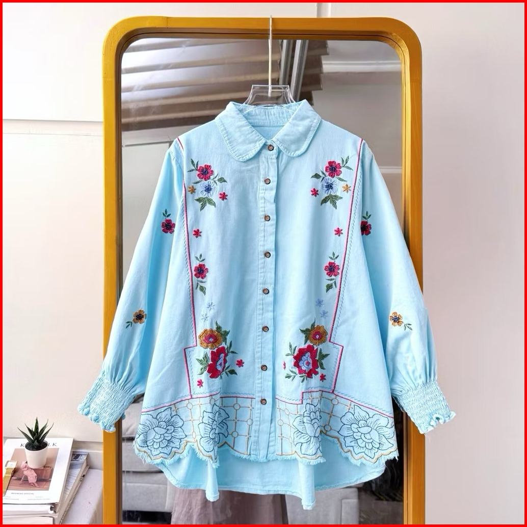 Wilona Jeans Blouse Premium Atasan Jeans Premium Bordir