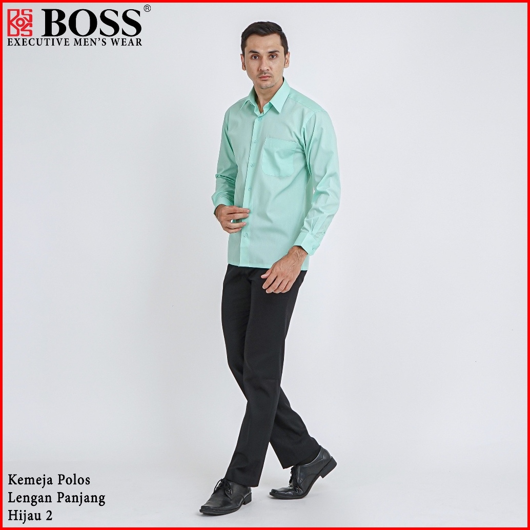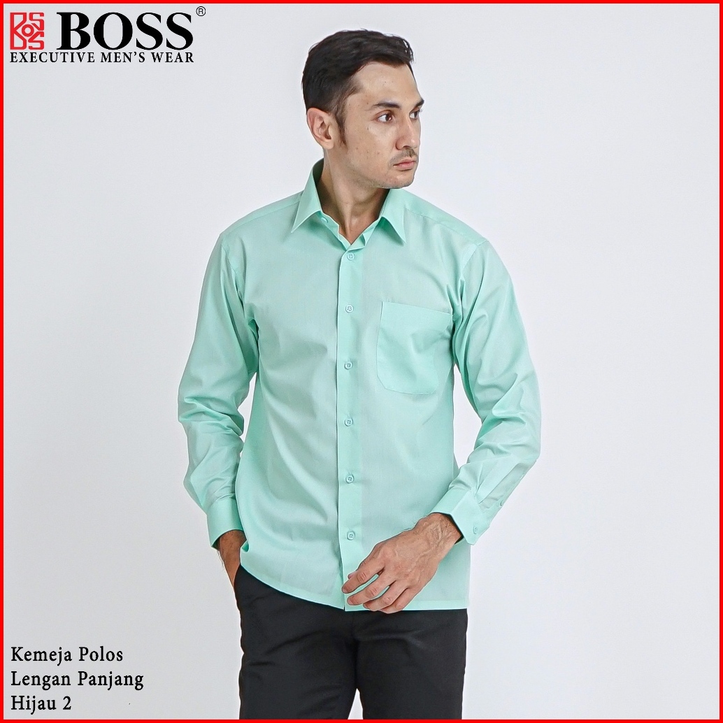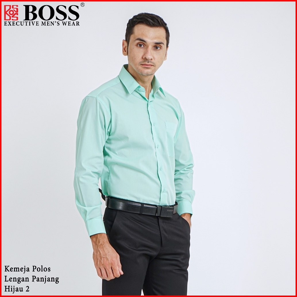 Boss Kemeja Polos Pria Lengan Panjang Regular Fit Hijau Muda Mint