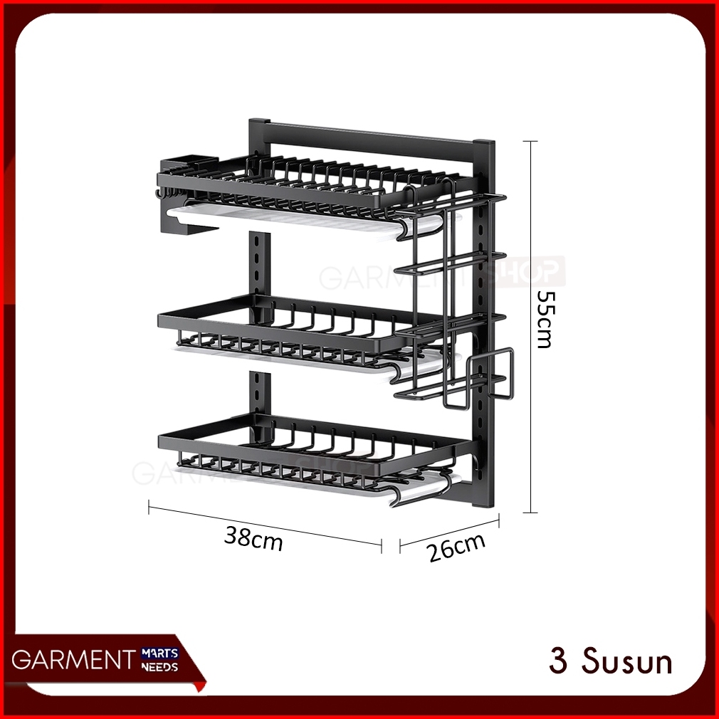 Rak Piring Gantung 2 3 Susun Tempel Dinding Organizer Dapur Stainless Anti Karat Penyimpan Mangkuk Nampan