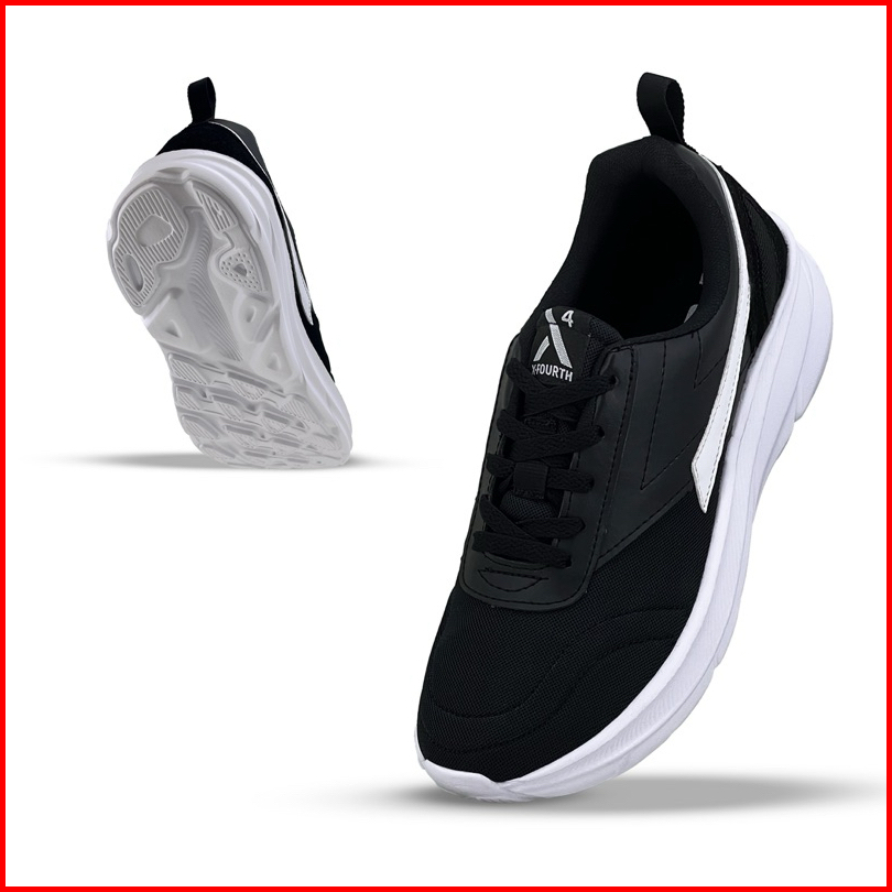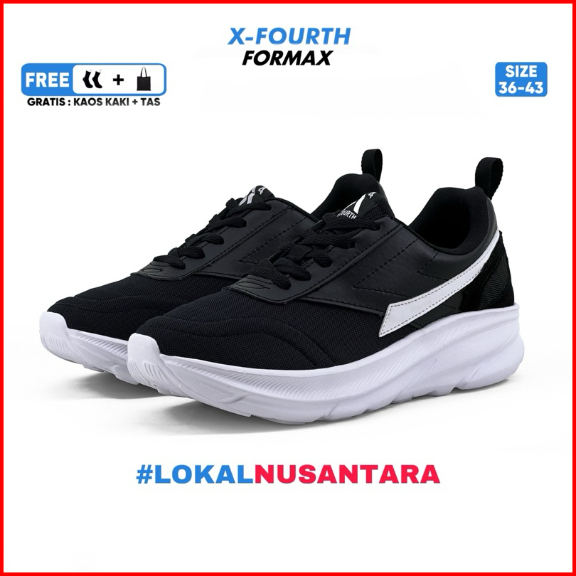 X-fourth Formax Black White - Sepatu Trainer Olahraga Daily Running Lari Sekolah Pria Wanita Sneakers Kasual Senam Fitne
