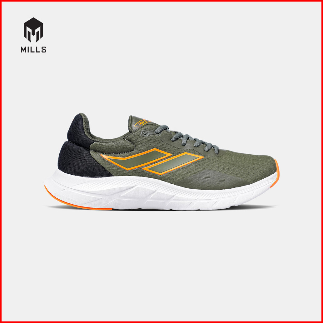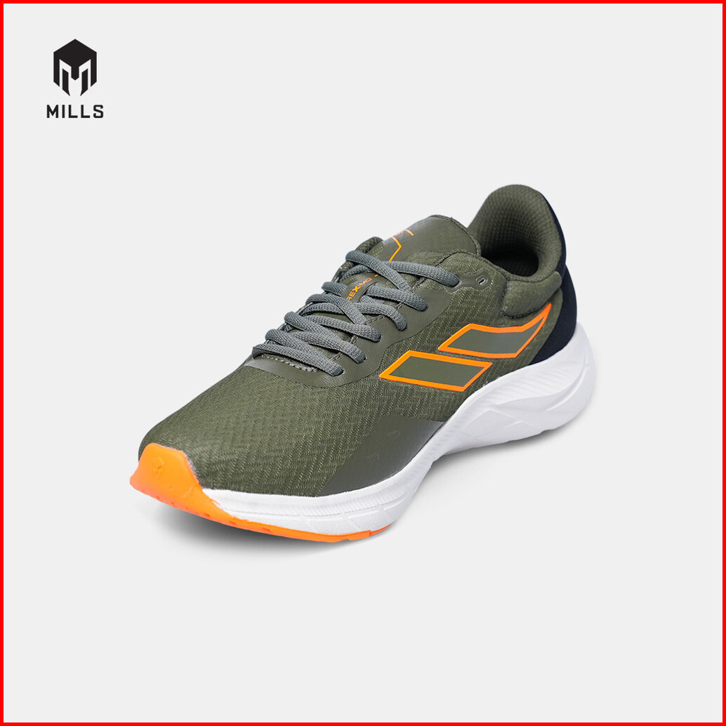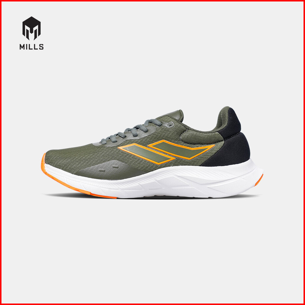 Mills Sepatu Lari Running Shoes Treximo Vision Olive Black Orange 9103408