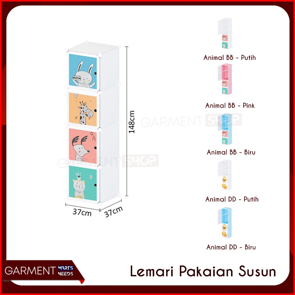 Lemari Baju Anak Gantung 4 Kolom Karakter Animal Portable Tempat Pakaian Buku Boneka
