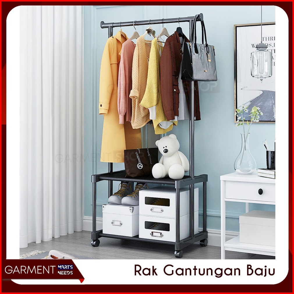 Stand Hanger Rak Gantungan Baju Tas Berdiri Rak Sepatu 3 Susun Jemuran Roda Besi Stainless