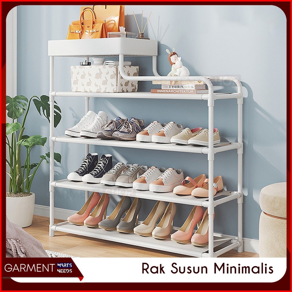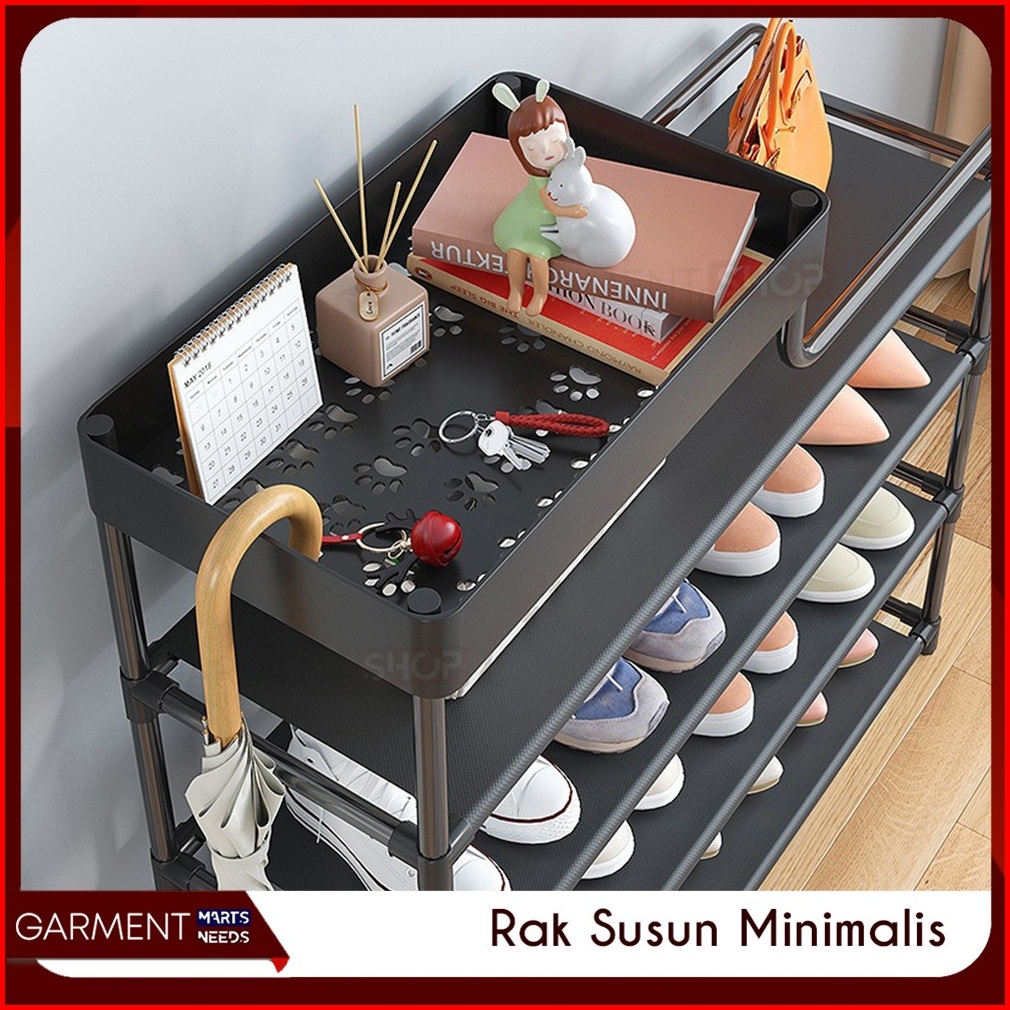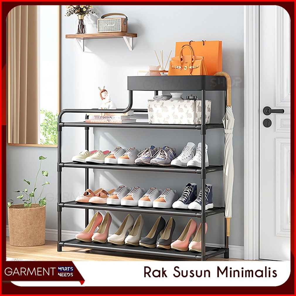 Rak Sepatu 4 5 6 Susun Dengan Keranjang Plastik Pipa Besi Tempat Penyimpanan Sandal Ruang Tamu Keluarga Serbaguna