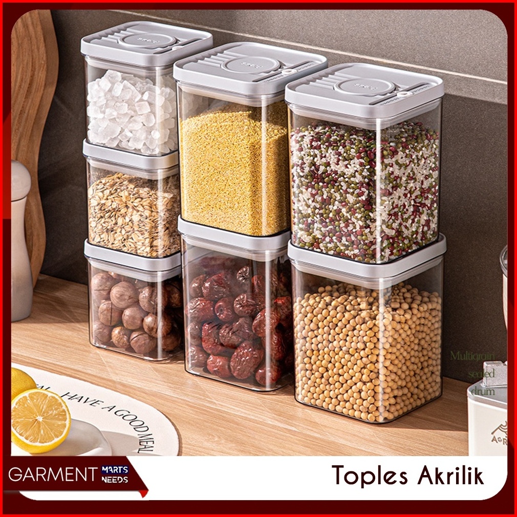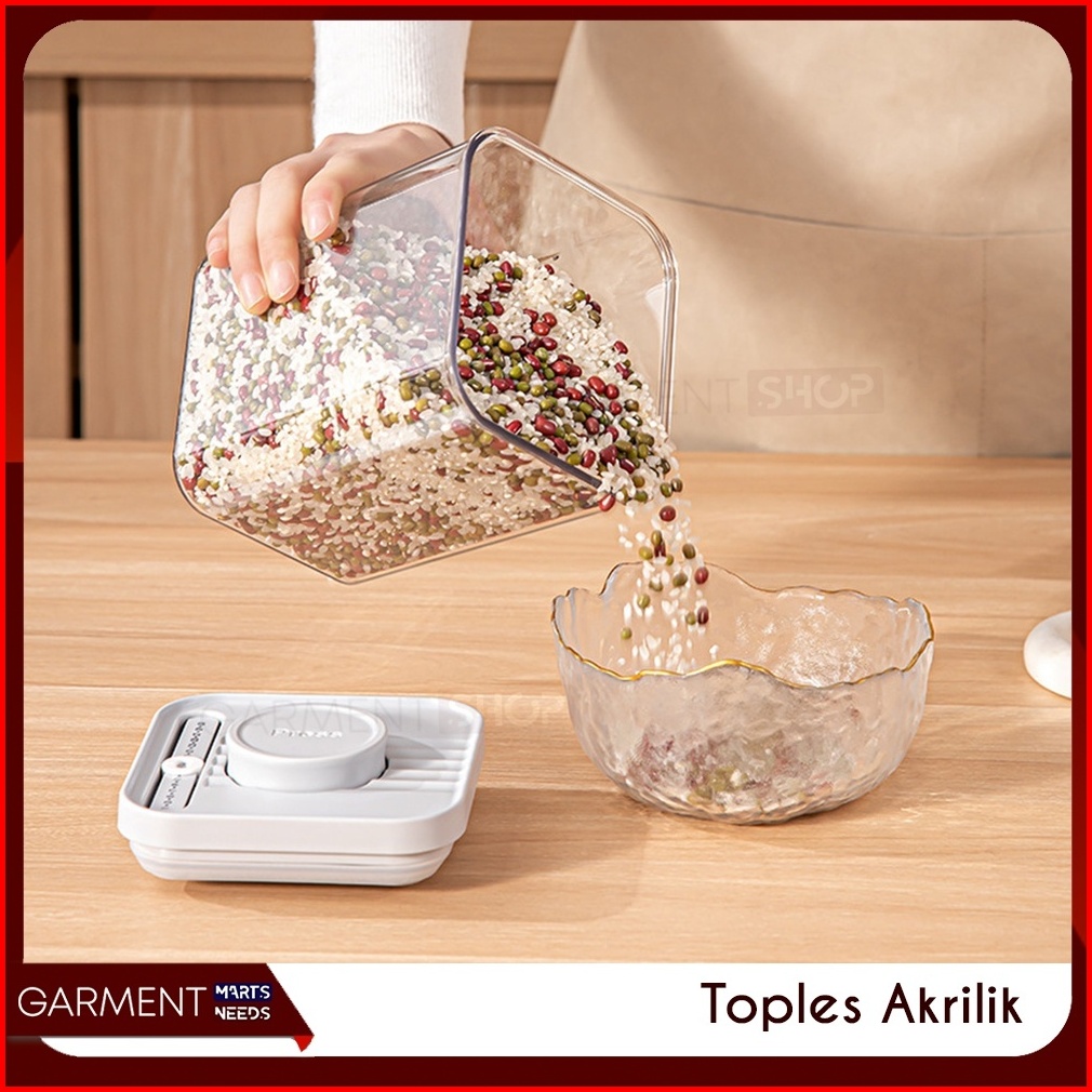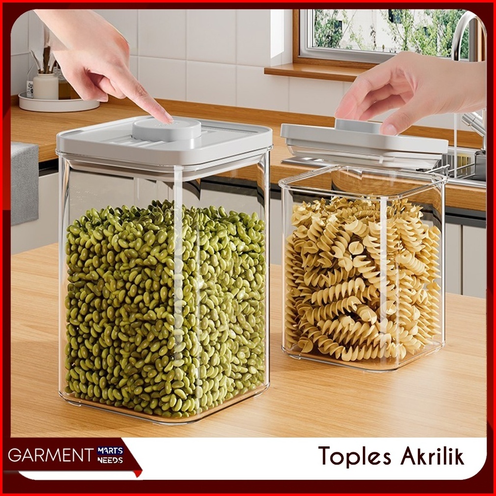 Toples Akrilik Bening Penyimpanan Sereal Snack Bahan Makanan Kotak Tutup Tekan Press Rapat Anti Bocor