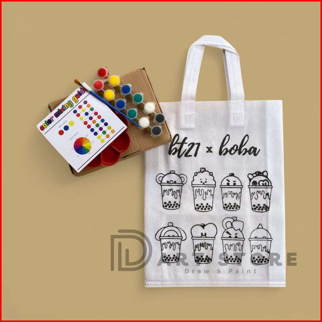 Termurah Totebag Lukis Tas Melukis Totebag Mewarnai Tas Mewarnai Totebag Polos Blacu Totebag Motif Cat Akrilik Kuas Luki