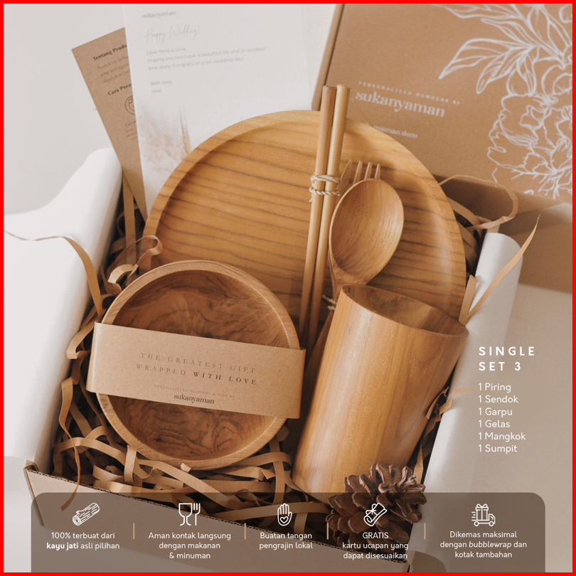 Hampers Hadiah Pernikahan Alat Makan Kayu Jati Wedding Gift Set Birthday Gift Set
