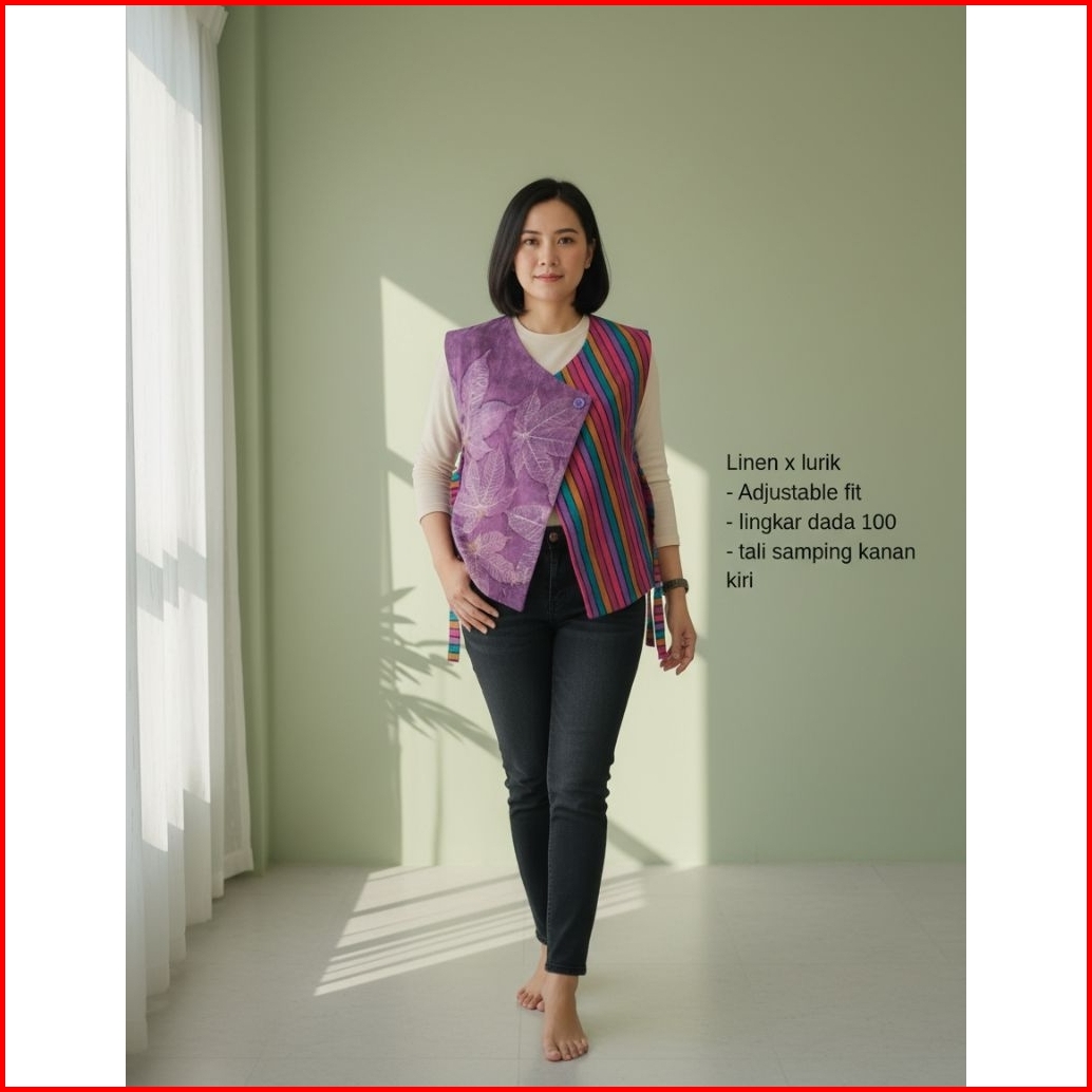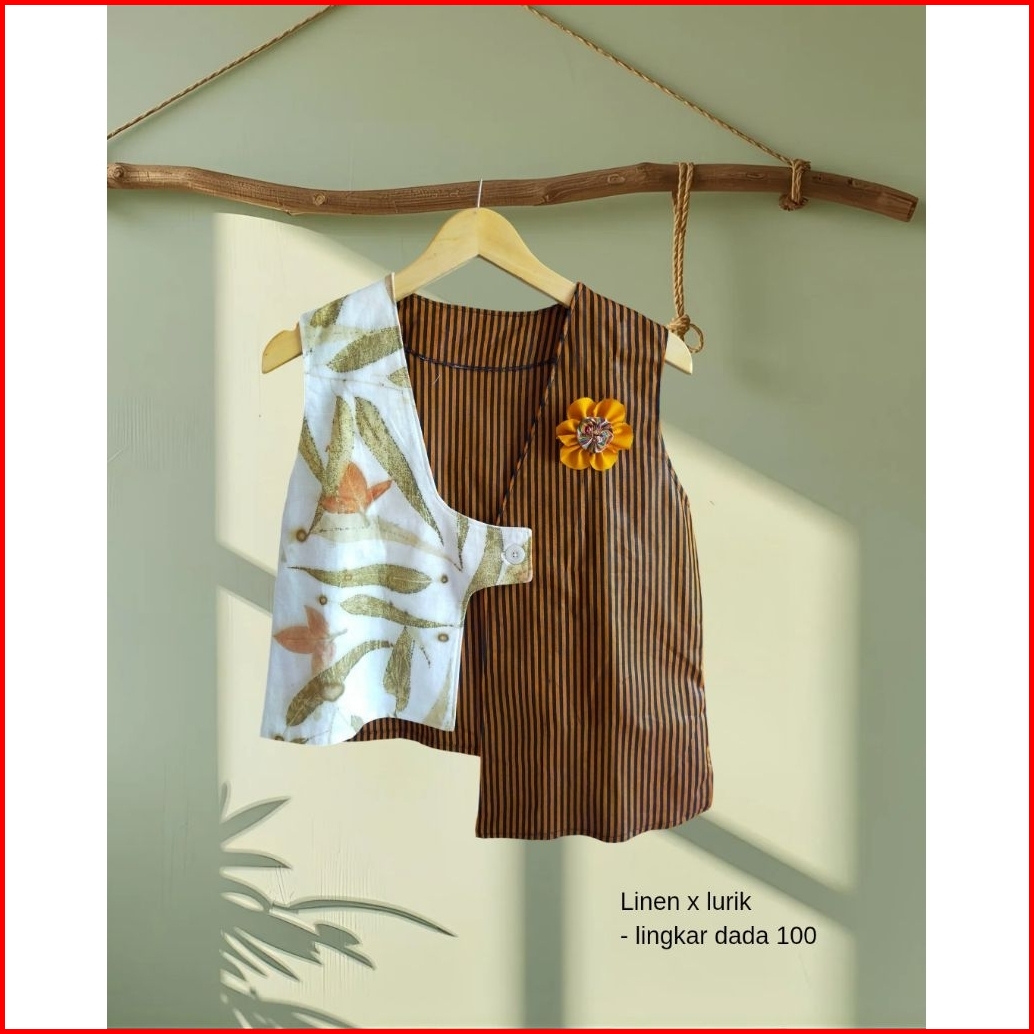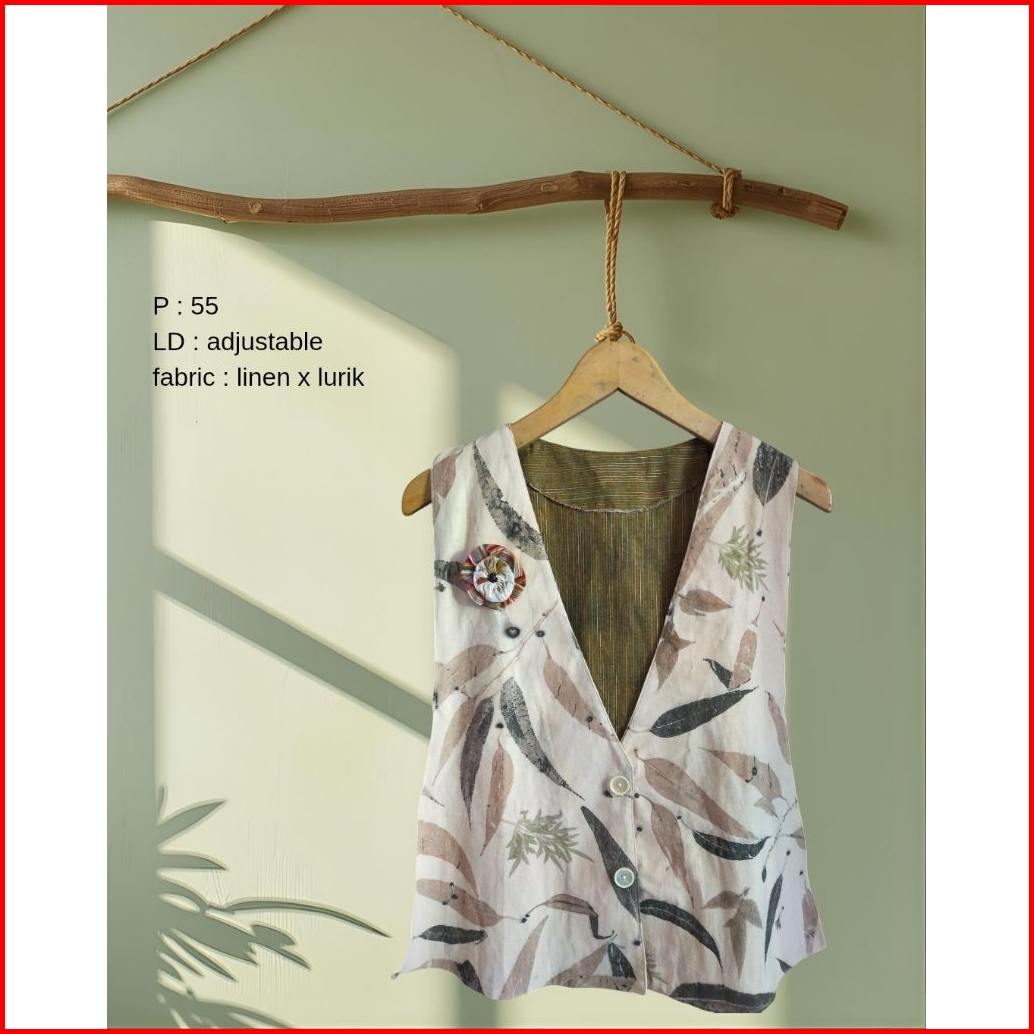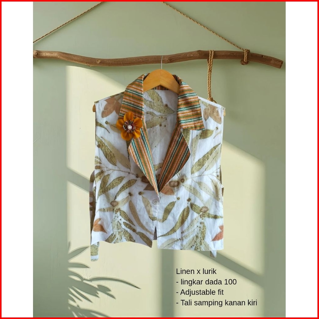 Vest Rompi Outer Ecoprint Batik Kombinasi Lurik Motif Cetak Daun Asli