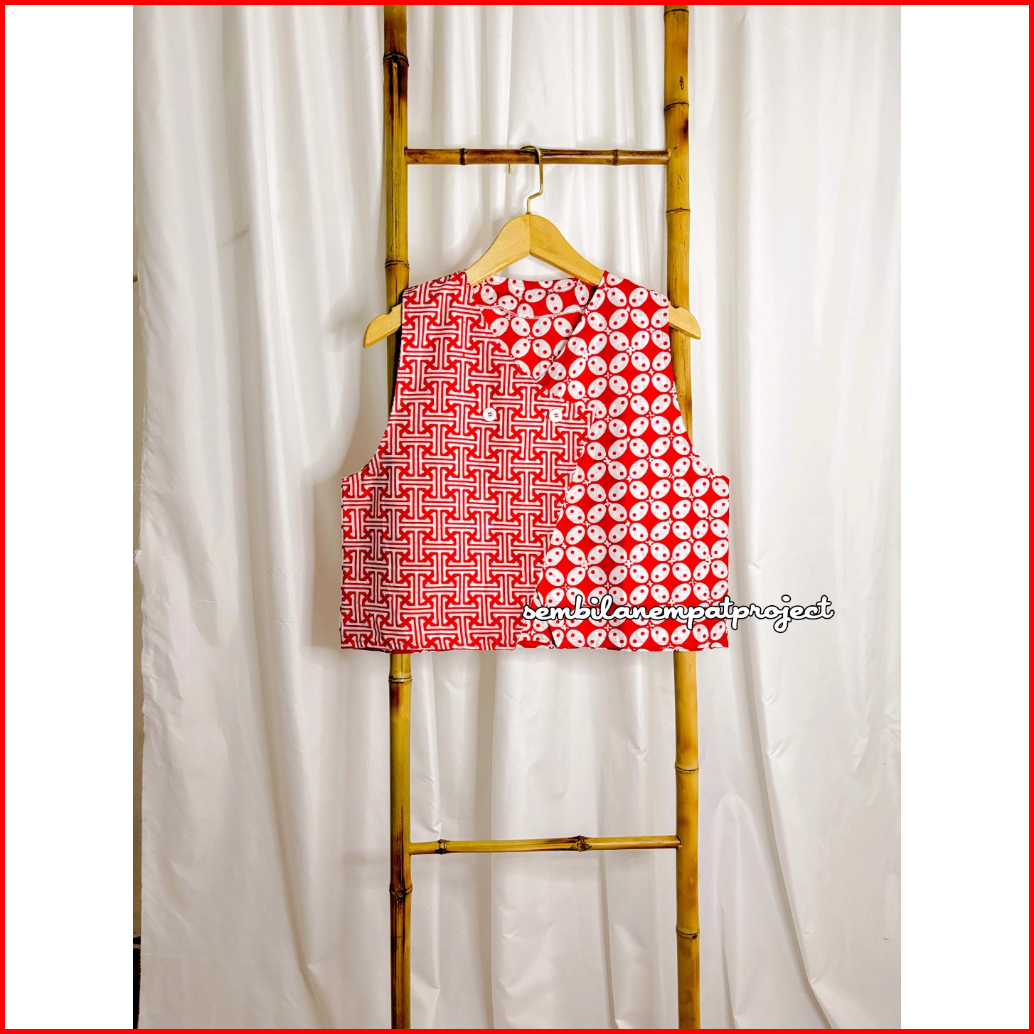 Manda Vest Vest Batik Rompi Wanita Rompi Merah Putih